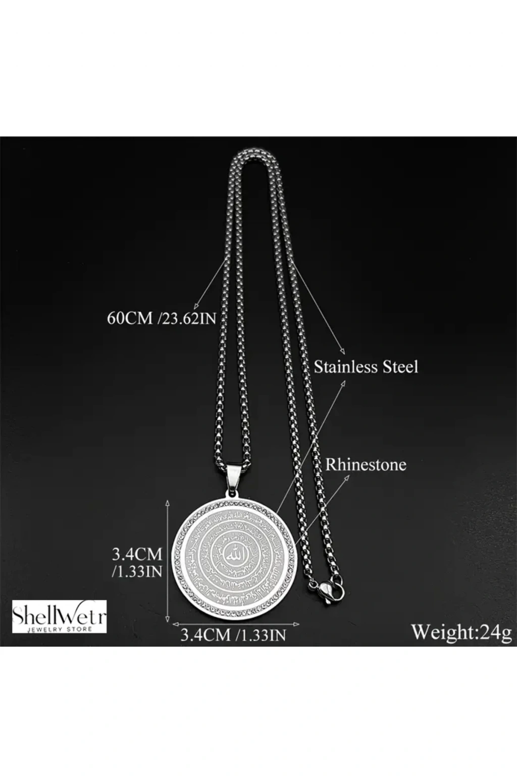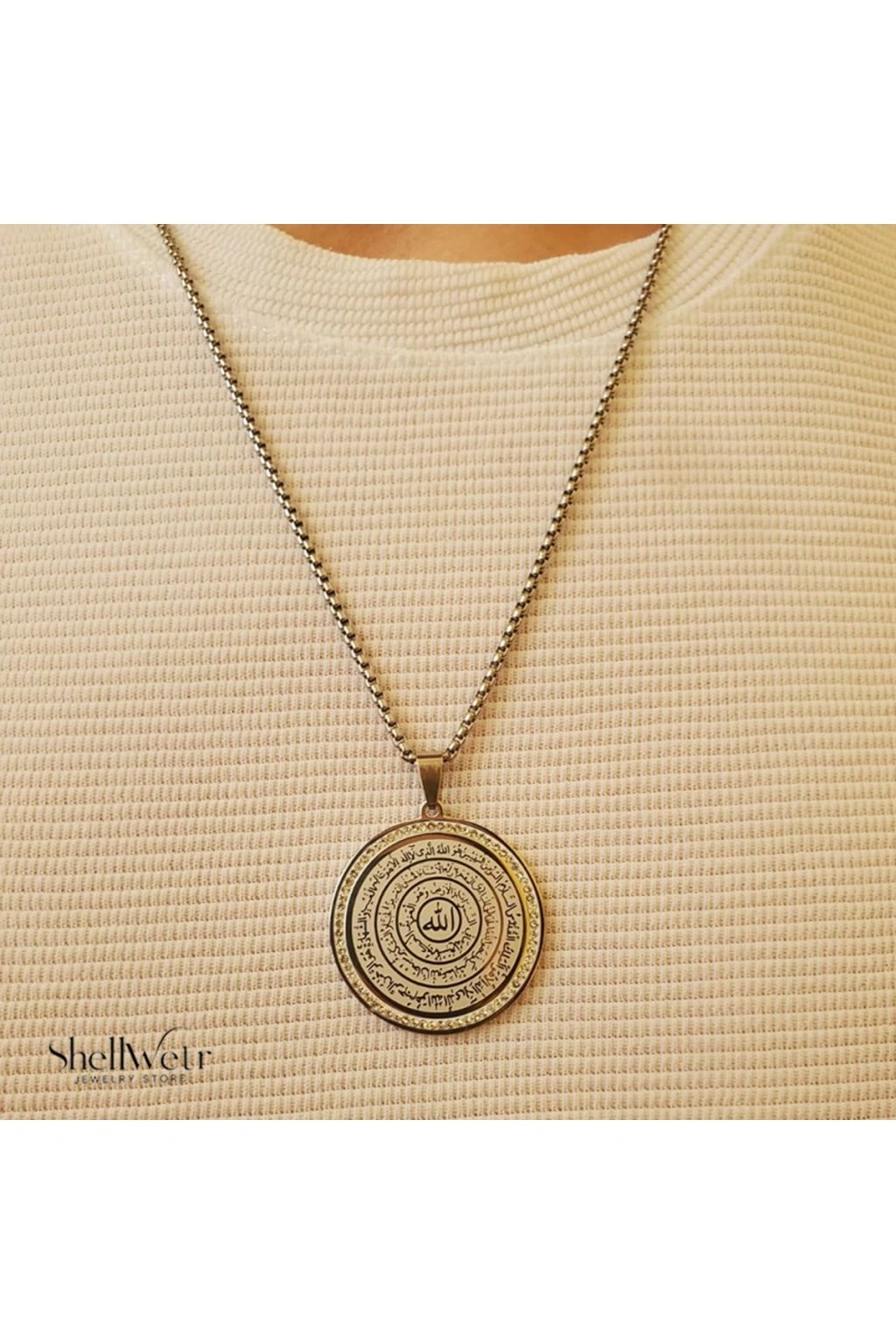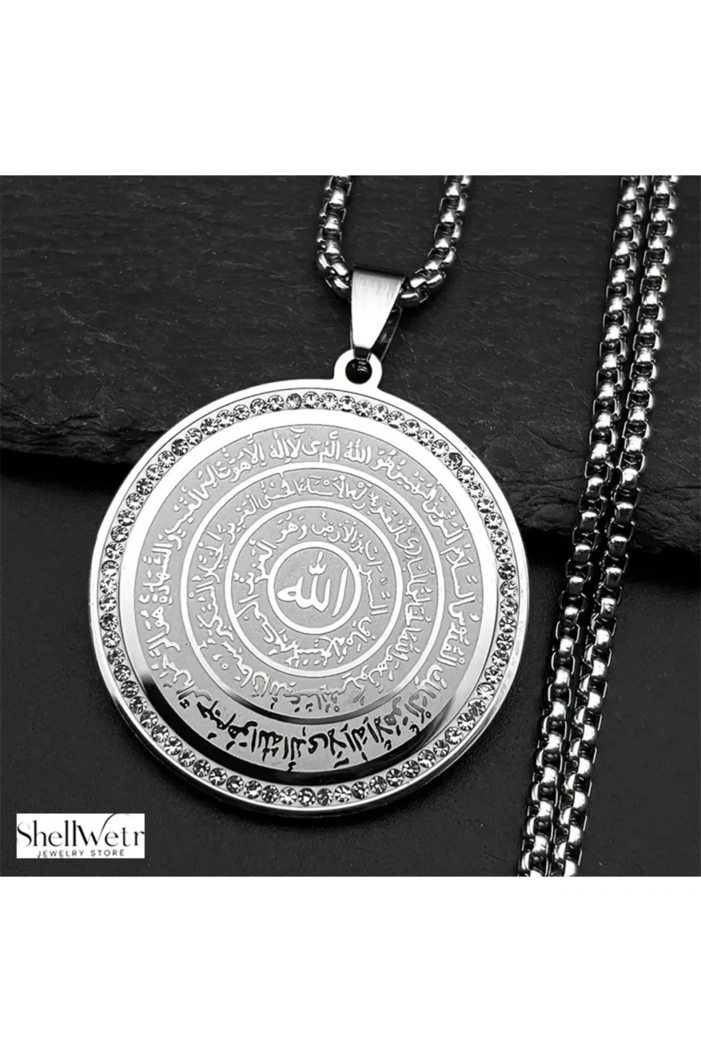 - Hem erkekler hem de kadınlar için uygun, unisex tasarımıyla herkes tarafından rahatlıkla kullanılabilir.; - Dayanıklı çelik materyali sayesinde uzun süreli kullanım sunar ve kararma yapmaz.; - Hastalık ve musibet gibi olumsuz etkenlere karşı koruma sağlar; Allah ve Haşır sureleriyle güçlenir.; - Gümüş rengi ile şıklığı ve zarafeti temsil eder; her türlü kıyafetle kolayca uyum sağlar.; - Kolay bakım imkanı sunar; nemli bir bezle silerek temizlenebilir.; - Shellwetr markası tarafından ithal edilmiştir ve kalite standartlarına uygun üretilmiştir.; - Özel tasarım oval şekliyle dikkat çekici bir aksesuar olarak öne çıkar.; - 1 yıl garantisiyle satın alma sonrası da güven verir.
