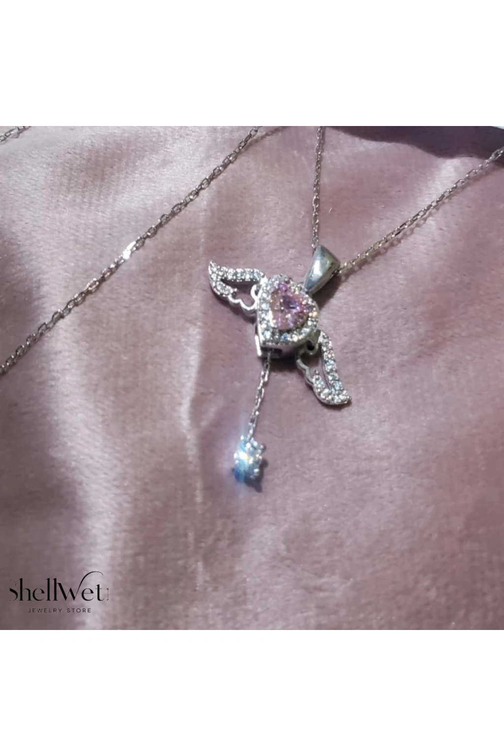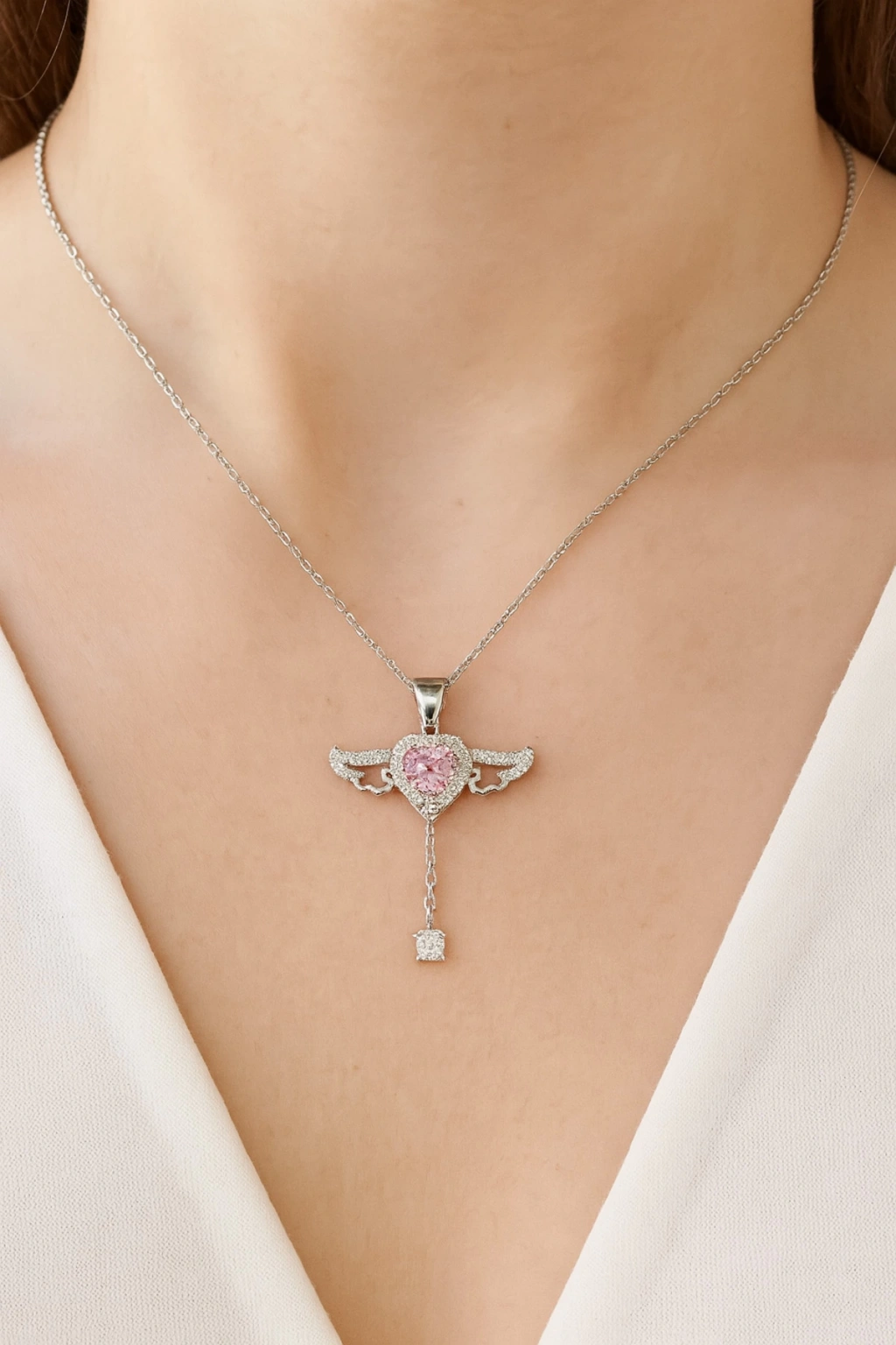 - 925 ayar gümüş malzemesiyle uzun ömürlü ve kaliteli bir kullanım sunar.; - Kadın ve kızlar için özel olarak tasarlanmış, gençlerin enerjisini yansıtan zarif bir aksesuar.; - Göz alıcı zirkon taşlarla süslenmiş, her türlü kıyafetle uyum sağlayacak parlaklıkta bir görünüm kazandırır.; - 45 cm ve üzeri uzunluğu ile farklı boy seçenekleriyle her boyuna uygun bir seçenek sunar.; - Gümüş rengi sayesinde klasik ve şık bir tarz yaratırken, melek kanatlı pembe taş kalpli tasarımı ile feminenliği ön plana çıkarır.