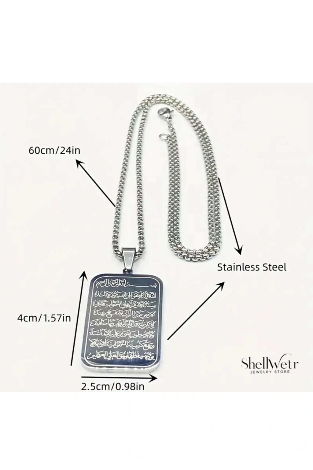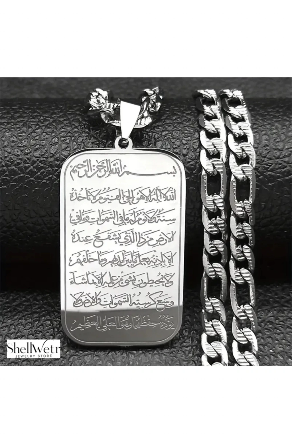 - Gümüş rengiyle şıklığı ve zarafeti bir arada sunan Ayetel Kürsü yazılı koruyucu madalyon, her türlü ortama uyum sağlar.; - Nemli bir bez kullanarak kolayca temizlenebilir yapısı sayesinde bakımı pratiktir; böylece zaman kazandırır.; - Unisex tasarımı ile hem kadınların hem de erkeklerin kullanımına uygundur; geniş bir kullanıcı kitlesine hitap eder.; - Dayanıklı krom materyali sayesinde uzun süreli kullanım vaat ederken, estetik görünümünden ödün vermez.; - Taş detayı bulunmayan bu madalyon, minimalist tasarım anlayışını benimseyenler için idealdir.; - Fransa menşeli olmasıyla kalite standartlarına bağlı kalarak üretilmiş olup, güvenilir bir tercih sunar.; - 1 yıl garanti süresi ile satın alma sonrası da destek alabileceğiniz bir ürün olarak öne çıkar, çelik kolye ucuna sahip olup zinciri 925 ayar gümüştür.