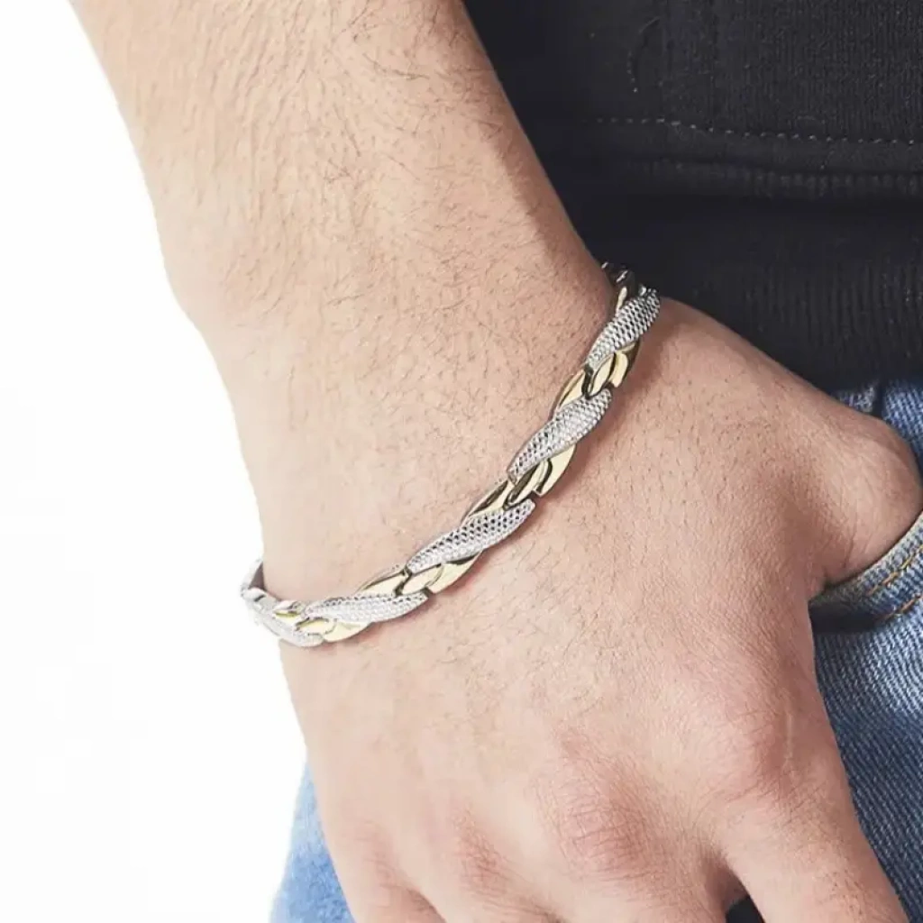 Boss bileklik, modern erkeğin duruşunu ve kararlılığını simgeleyen güçlü bir tasarımdır. Gümüş ve altın tonlarının ustaca harmanlandığı bu bileklik, sade bir zincirden çok daha fazlasını sunar: karakter, stil ve özgüvenin bilekteki yansıması. Her bir segment, dokulu yüzeyleriyle ışığı farklı açılardan yakalayarak bilek hareketine dinamizm katar. Bu detaylar, bilekliğe hem sofistike bir hava hem de maskülen bir enerji kazandırır.