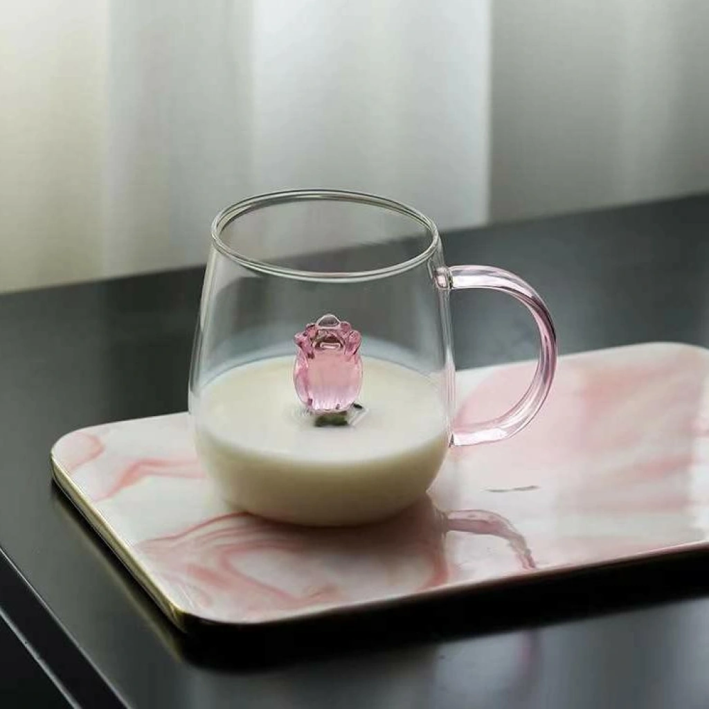 Her detayı özenle tasarlanan bu özel cam bardak, zarafeti ve romantik bir hissi bir araya getirir. Şeffaf camın içinde yer alan gül figürü, her yudumu küçük bir ana dönüştürür.