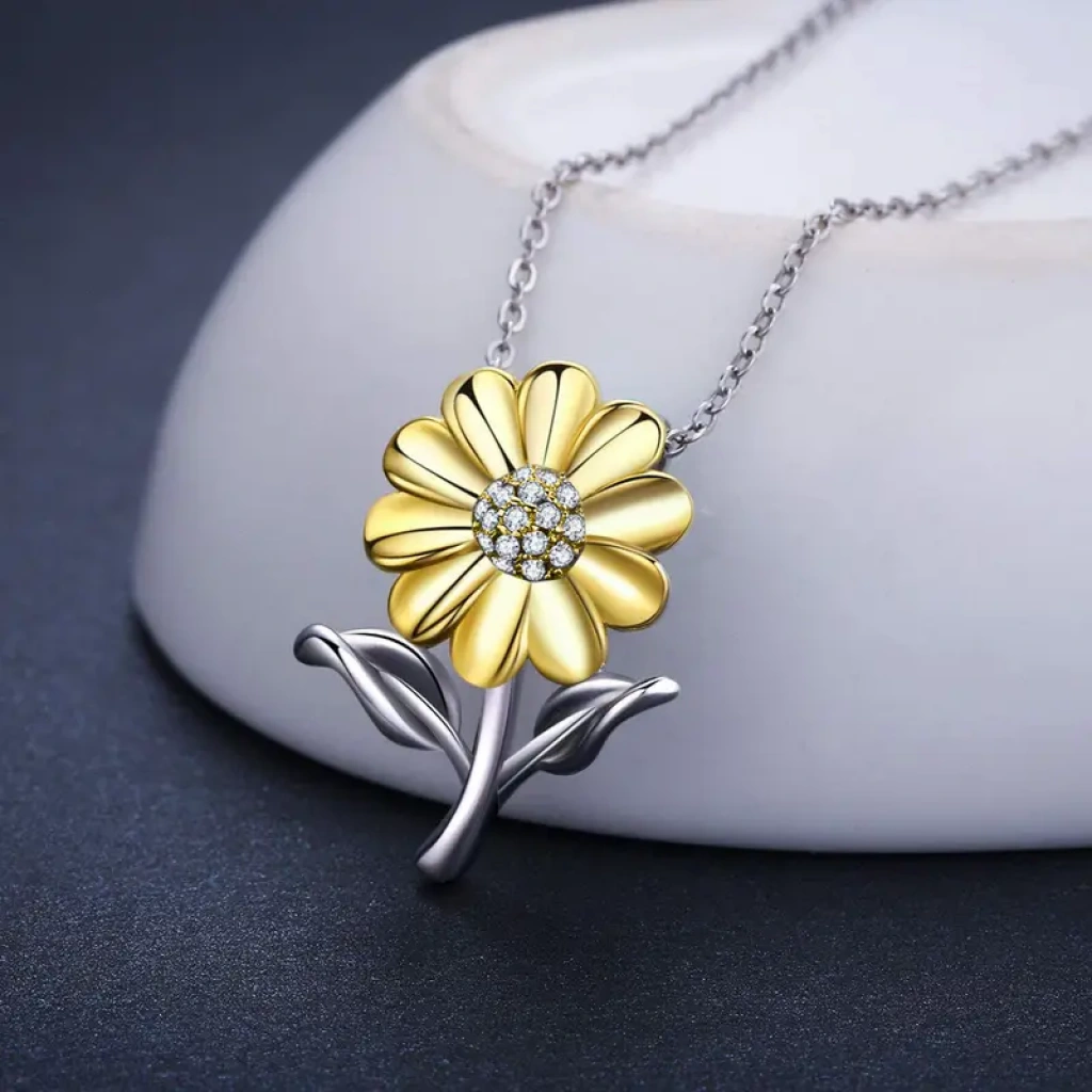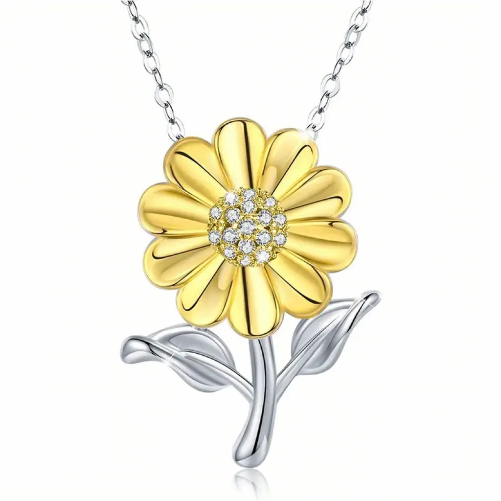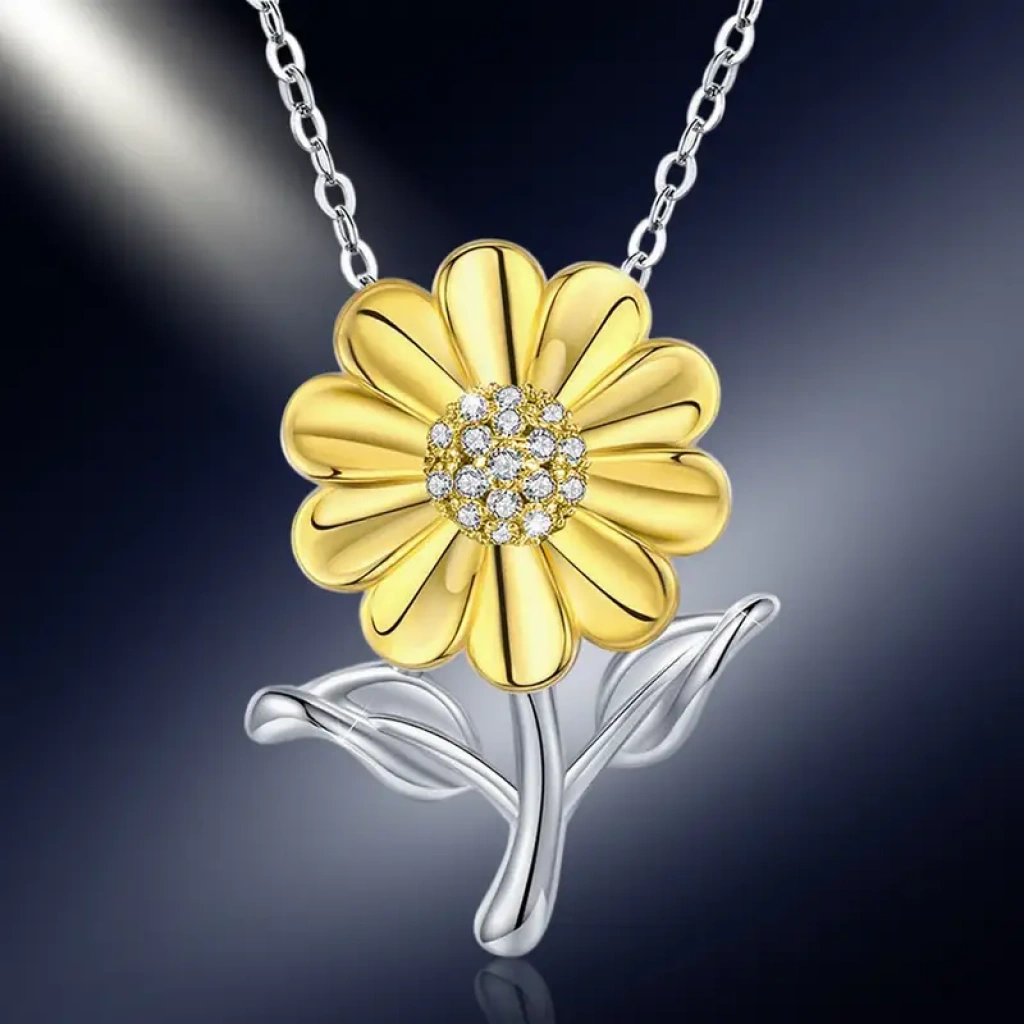 Güneş çiçeği Büyük Sarı Çiçek ve Açık Renkli Kolye 925 Ayar Gümüş Zincir