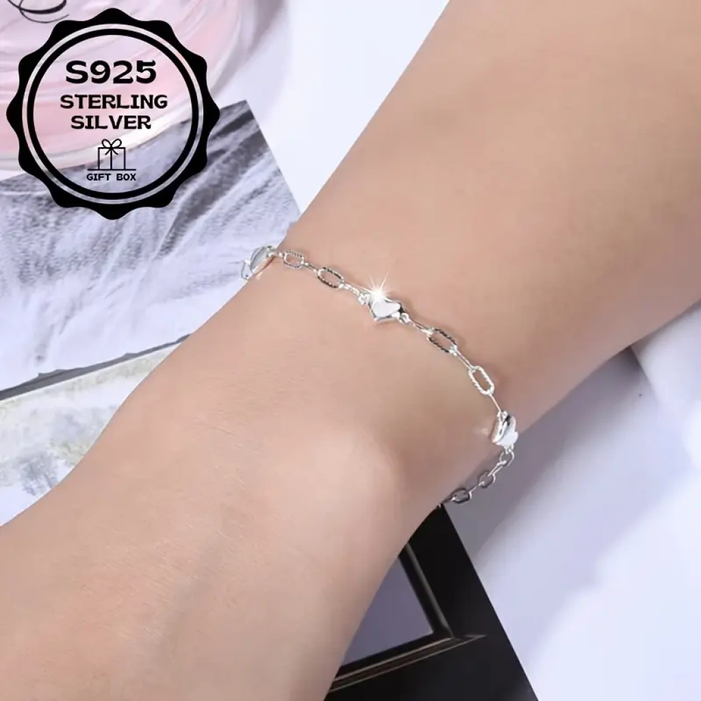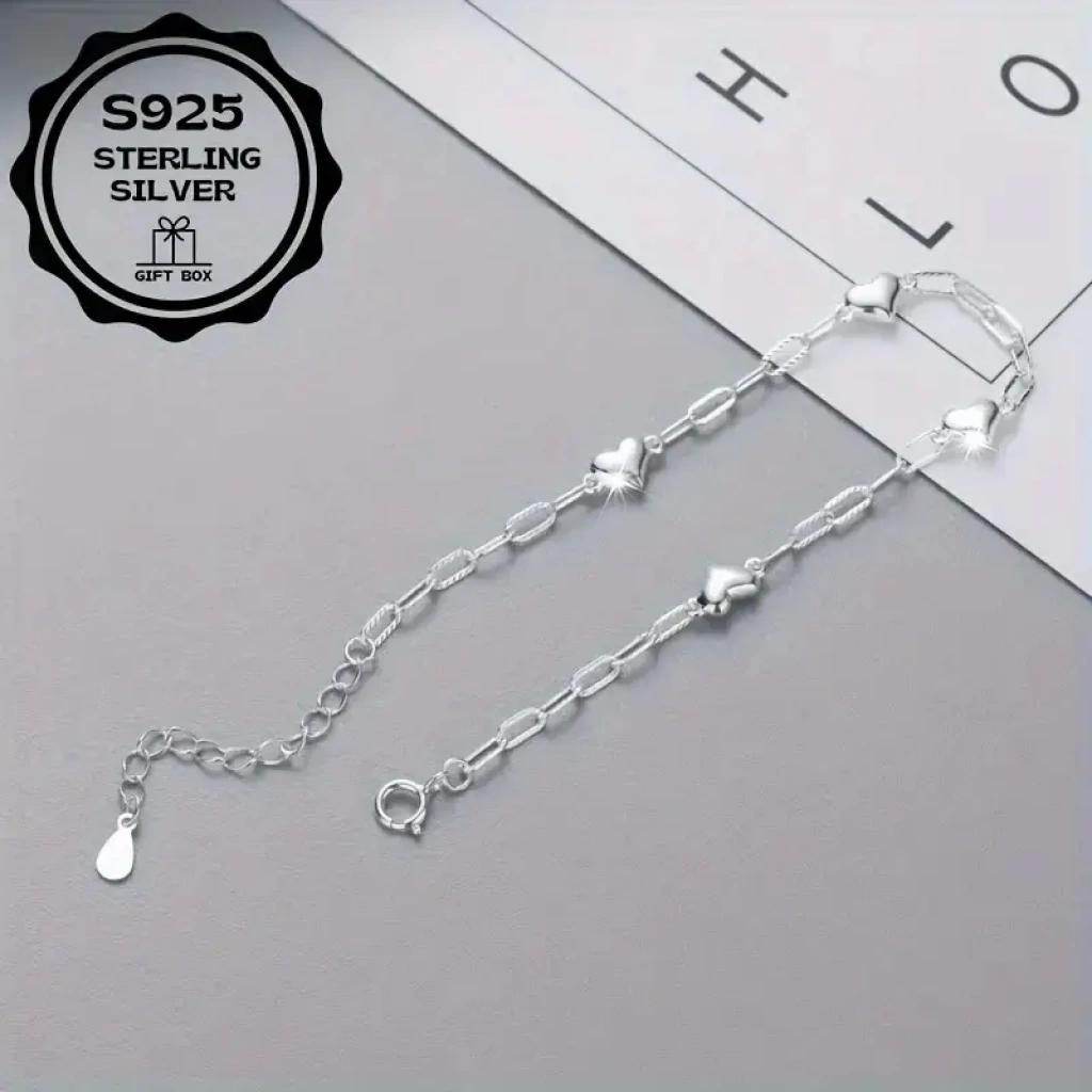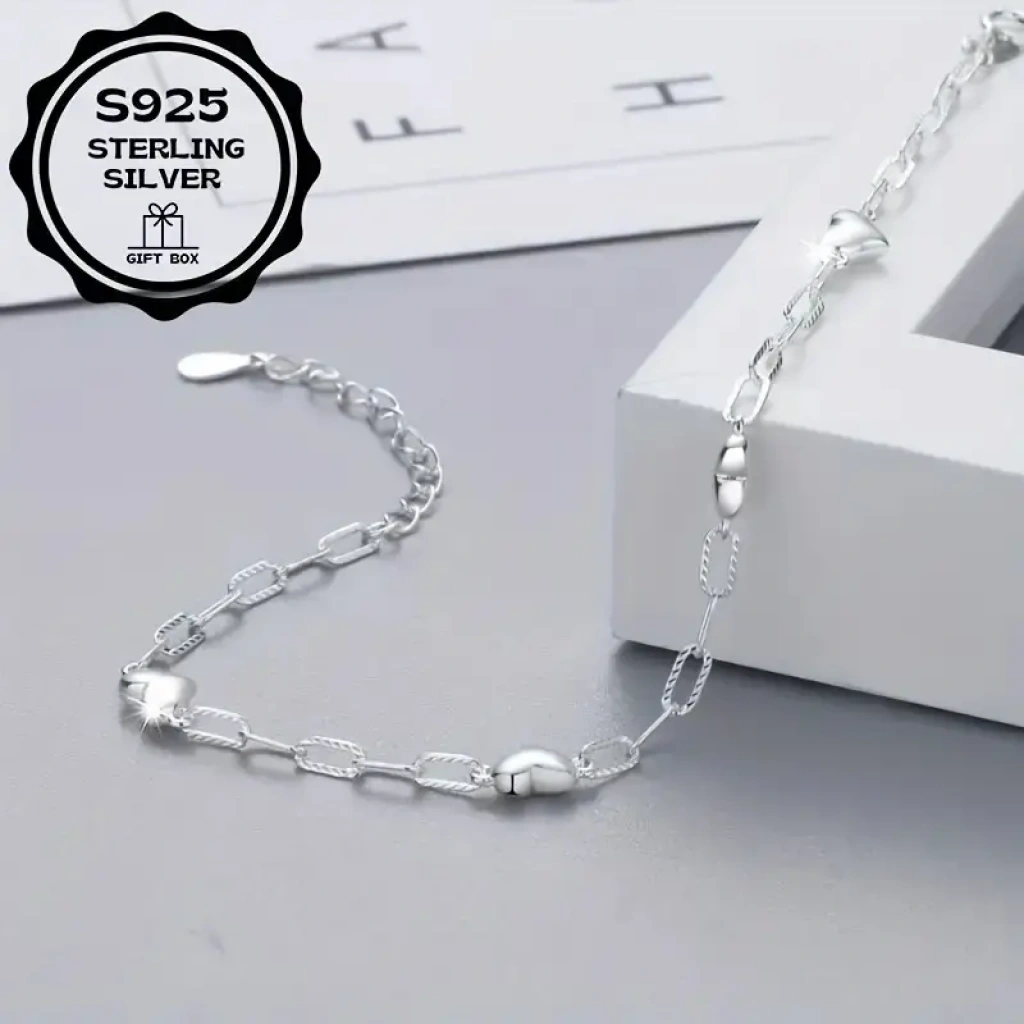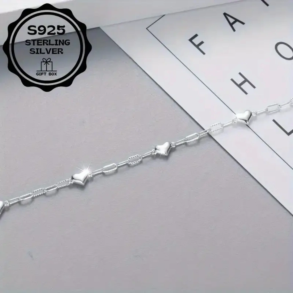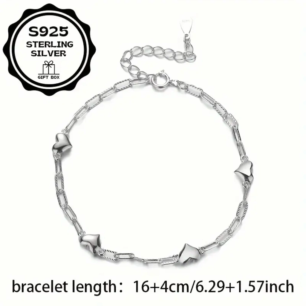 Heart chain 925 Ayar sade şık zincir kalpli gümüş bileklik
