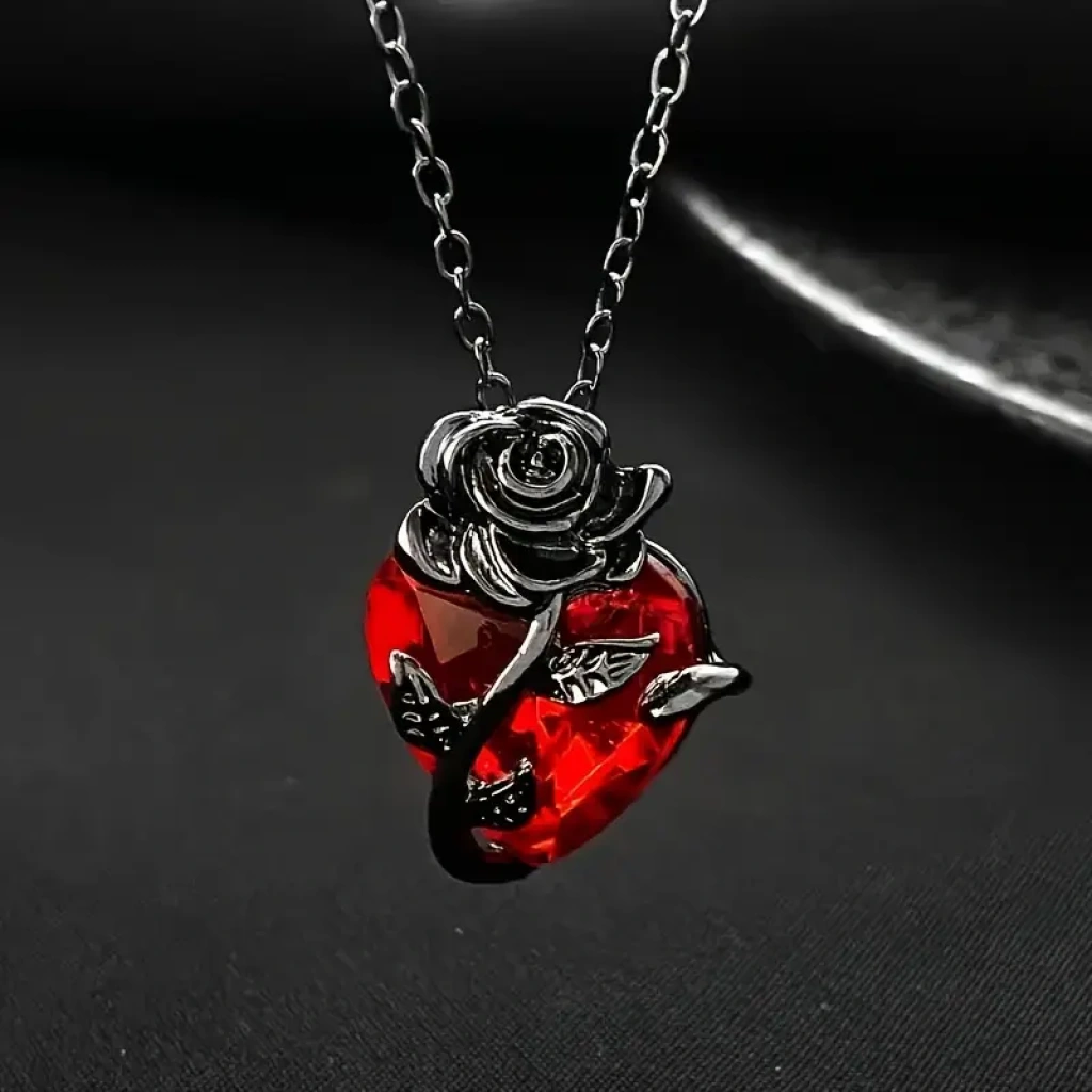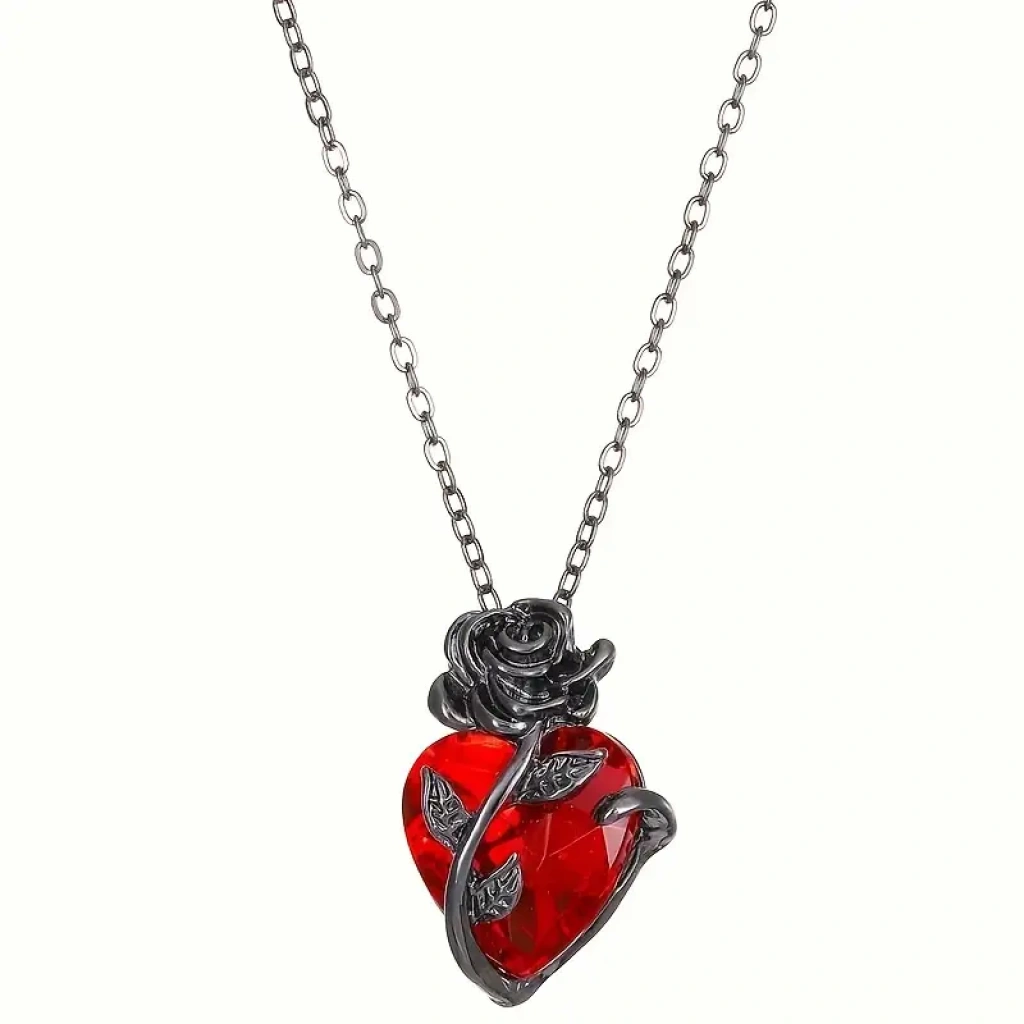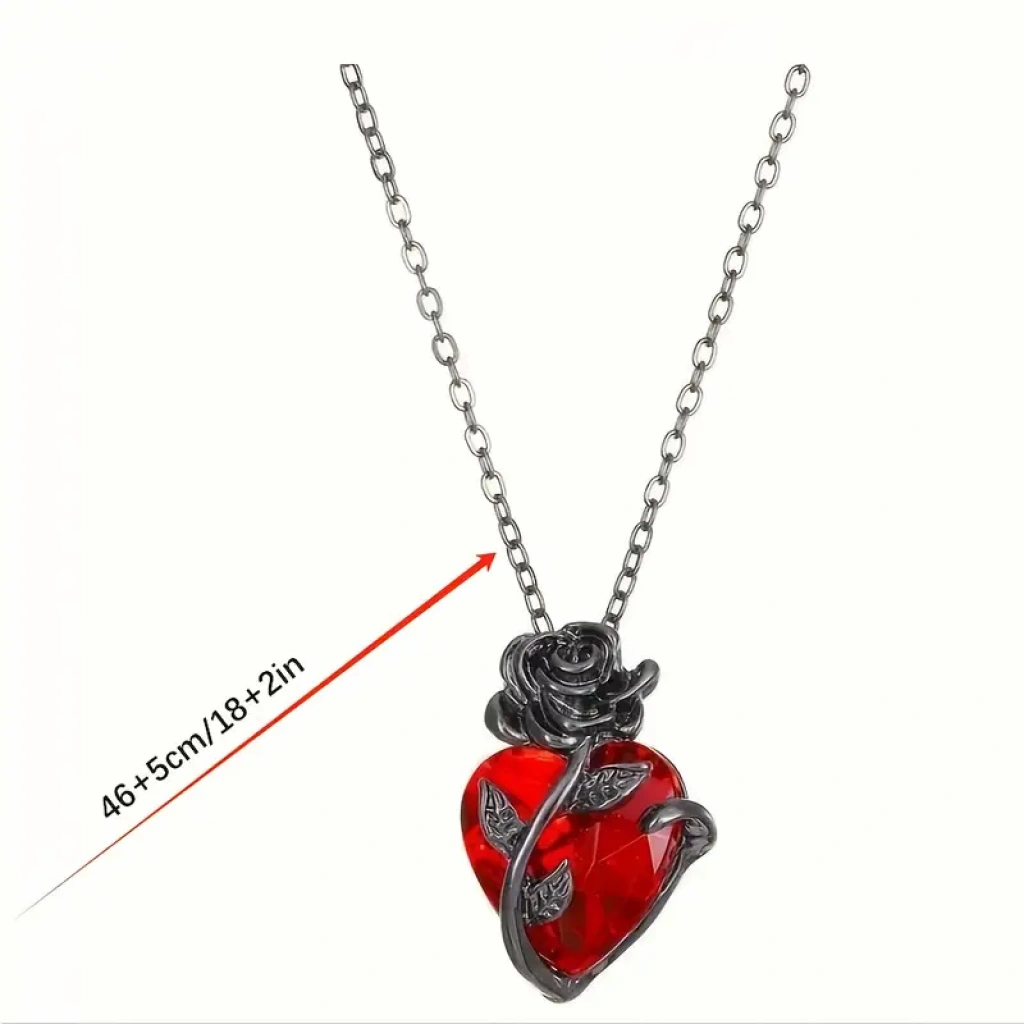 Heartrose Gül ve Kalp Kolye Koyu Gotik Zincir 26 Tasarım Kadın Kolye