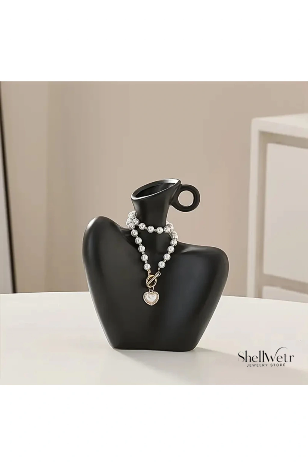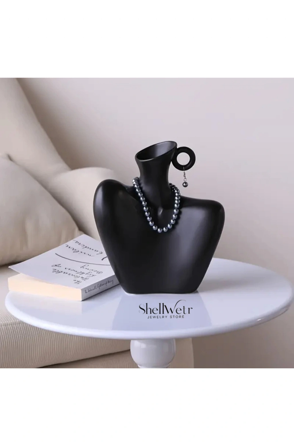 - Hem vitrin dekoru hem de takı sergileme vazo şeklindeki manken, evinizin estetiğini artırırken aynı zamanda aksesuarlarınız için şık bir sergi alanı sunar.; - Modern tasarımıyla dikkat çeken bu manken, her türlü iç mekan dekorasyonuna kolayca uyum sağlar ve görsel bir zenginlik katar.; - Takılarınızı düzenli ve şık bir şekilde sergileyebileceğiniz bu vazo şeklindeki manken, günlük kullanım için idealdir ve özel günlerde de göz alıcı bir detay olarak öne çıkar.; - Dayanıklı malzemeden üretilmiş olup uzun süreli kullanım için uygundur; böylece yıllar boyu ilk günkü gibi kalır.