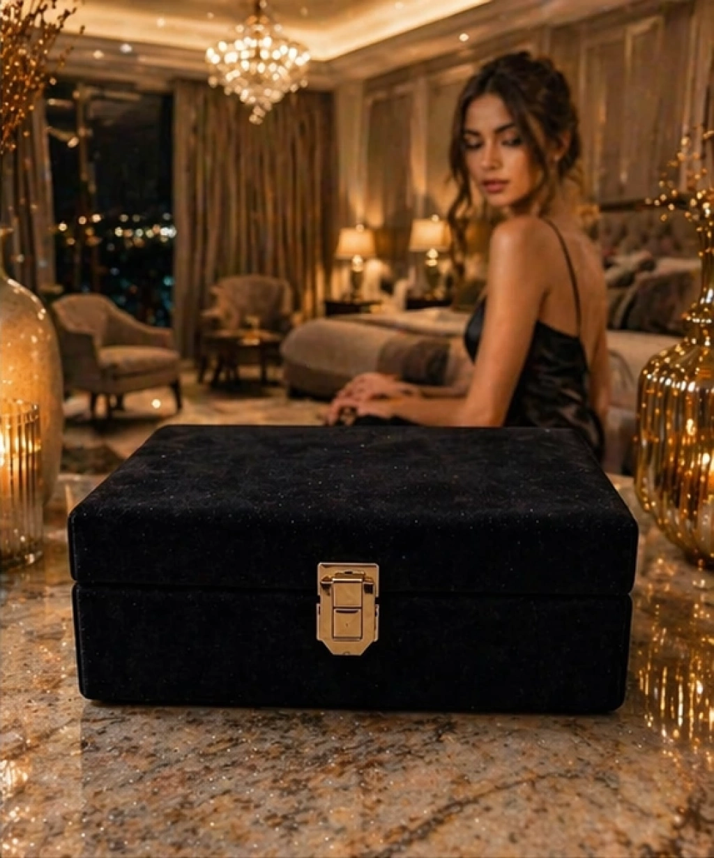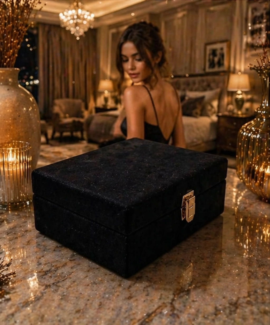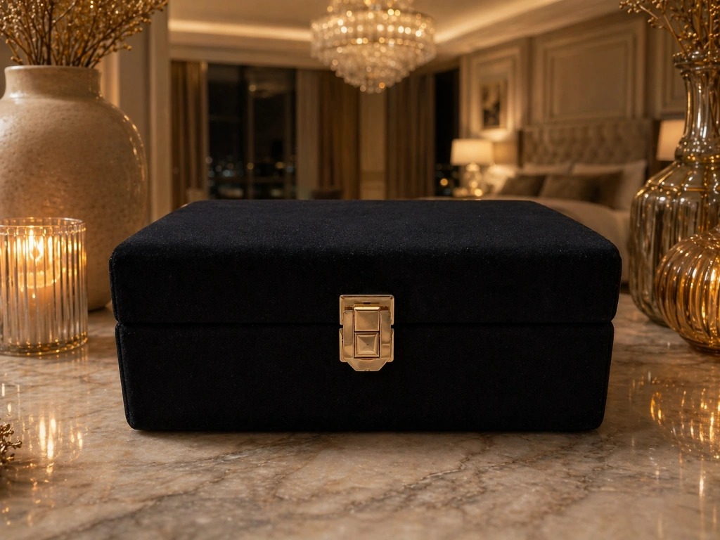 Shellwetr Hilton takı kutusu, şıklığı ve geniş tasarımıyla lüks kumaş kullanılarak üretilmiş bir takı kutusudur.