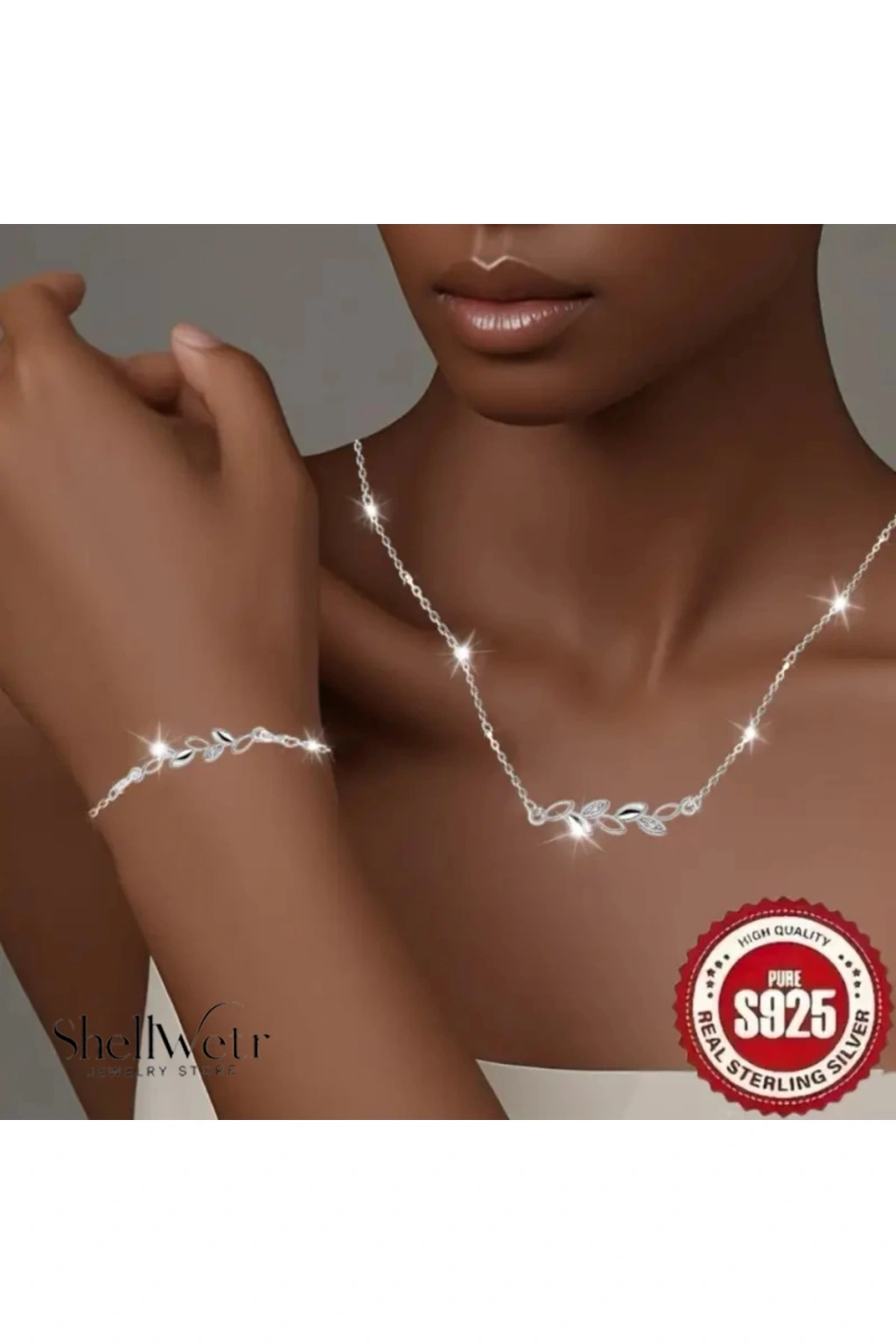 - 925 ayar gümüşten üretilmiş, uzun ömürlü ve kaliteli bir aksesuar deneyimi sunar.; - İki parçadan oluşan set; kolye ve bilezik olmak üzere sevgiliniz veya anneniz için mükemmel bir hediye seçeneği oluşturur.; - Gri renk tonuyla modern ve şık bir görünüm sağlar, her türlü kıyafetle kolayca uyum sağlar.; - Zirkon taş detaylarıyla göz alıcı bir parlaklık kazandırarak özel günlerde dikkat çekici bir stil vurgusu yapar.; - 45 cm boyutundaki zarif tasarımı ile hem günlük kullanım hem de özel anlar için idealdir.; - Shellwetr markası tarafından ithal edilmiş ve yetkili temsilcisi olarak güvenle tercih edebilirsiniz.; (Klipsi ve uzatma zinciri sağlam olması adına gümüş kaplamadır)