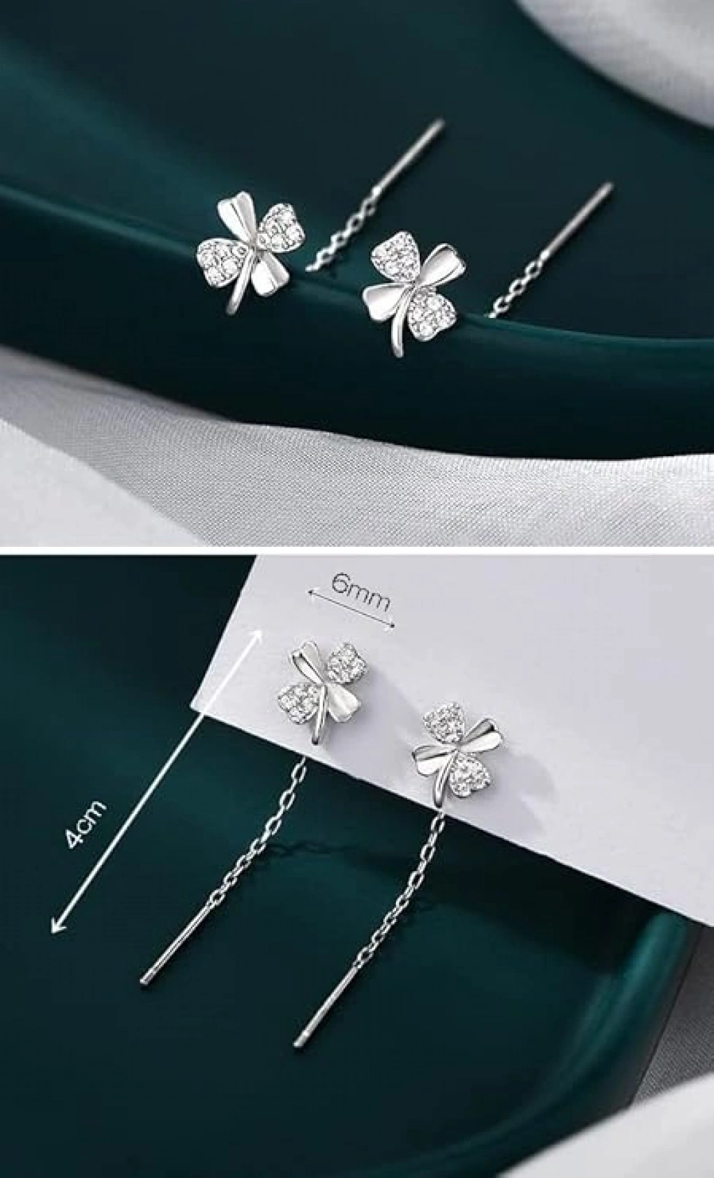 Şıklığı ve zarafeti bir arada sunan yonca figürlü 925 ayar gümüş küpe, şansın ve zarif stilin simgesi! Minimal tasarımı sayesinde hem günlük kullanıma hem de özel gün kombinlerine mükemmel uyum sağlar. Zincirli yapısı kulağınızda zarif bir sallantı oluşturur ve yüz hatlarını daha ince gösterir.