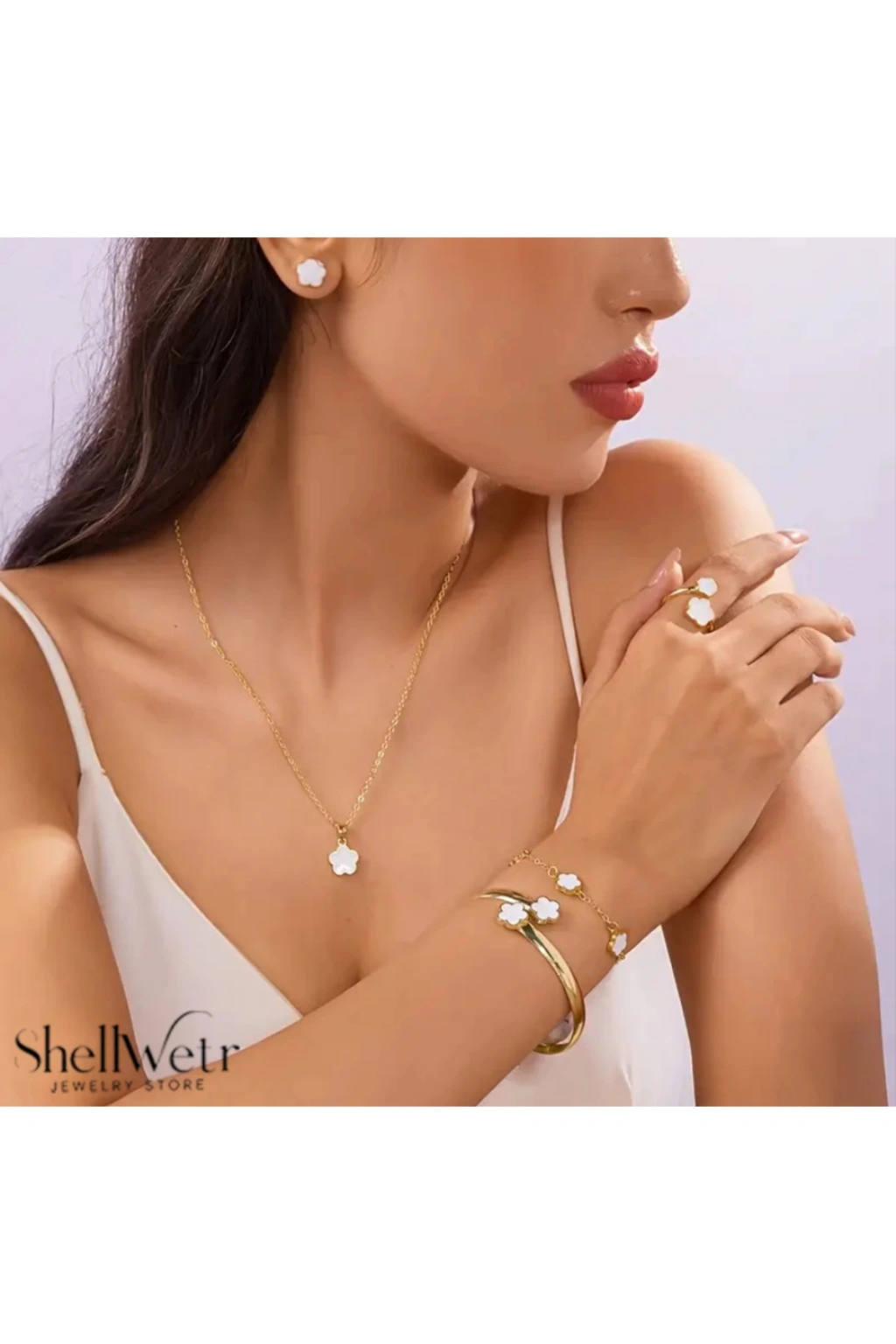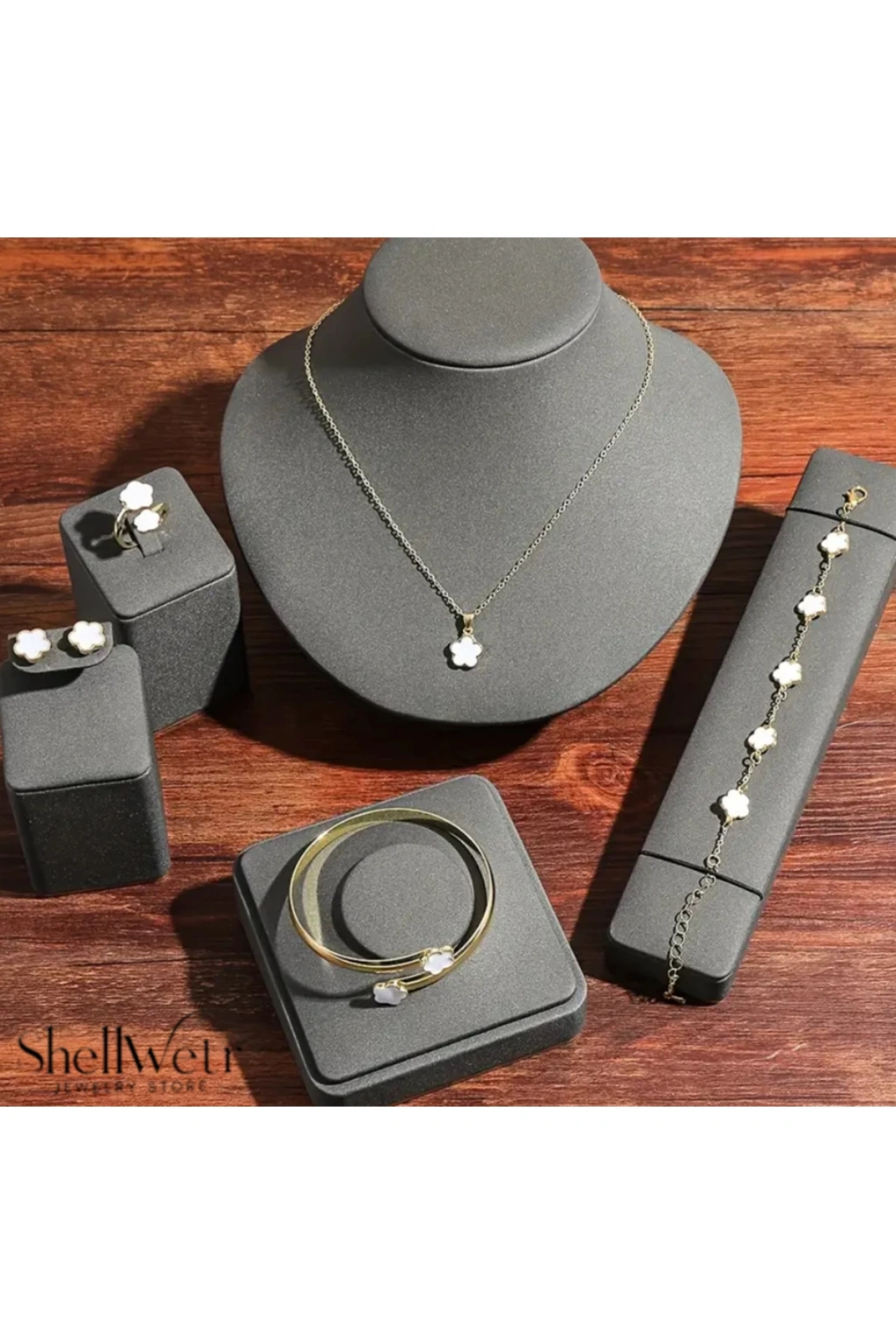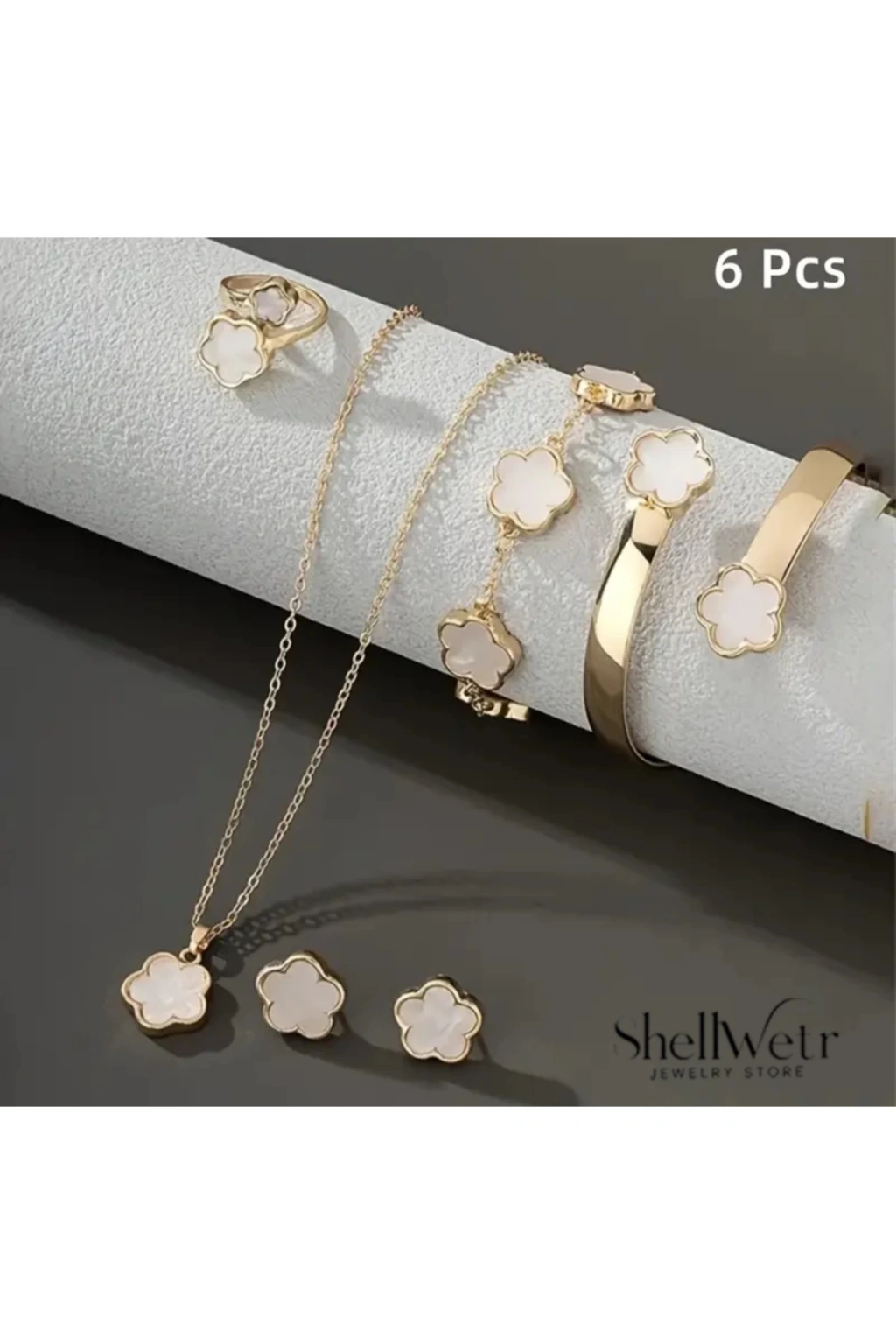 - Kadın ve kızlar için ideal bir aksesuar seçeneği sunan bu set, hem şıklığı hem de zarafeti bir arada barındırır.; - Altın rengi ve beyaz taş detaylarıyla göz alıcı bir görünüm kazandırarak her türlü kıyafetle uyum sağlar.; - Çelik materyali sayesinde uzun süreli kullanım için dayanıklılık ve kalite sunar.; - 6'lı paket içeriği ile birden fazla takı seçeneği sunarak farklı kombinler yapma imkanı tanır.; - TR menşei garantisiyle yerli üretim kalitesini ve güvenilirliğini ön plana çıkarır.