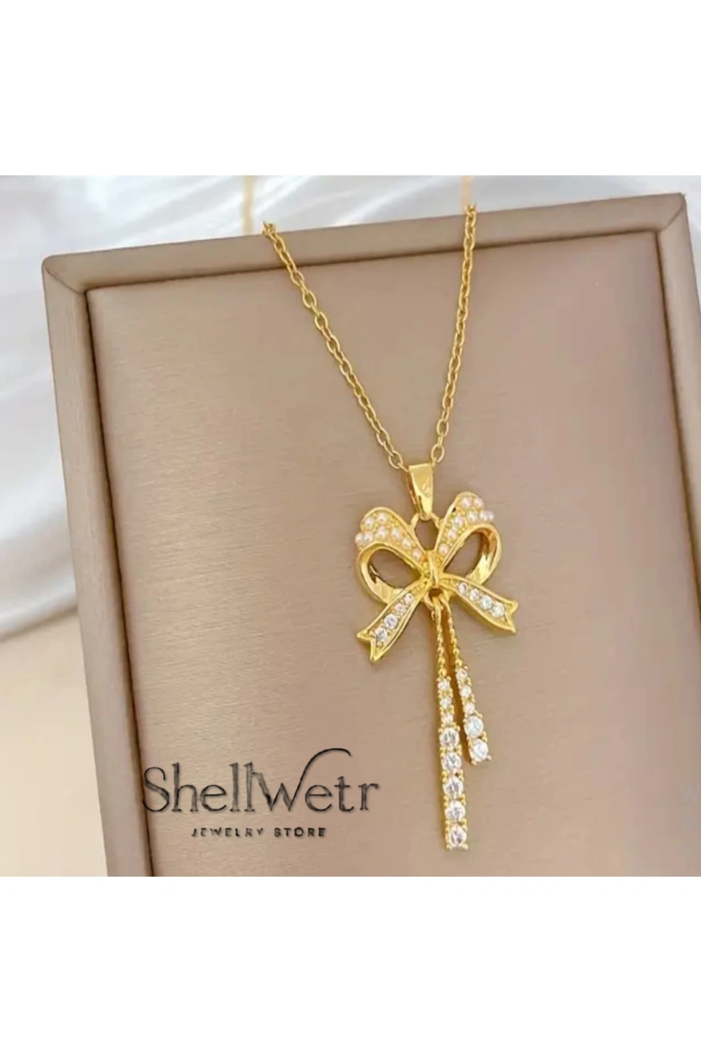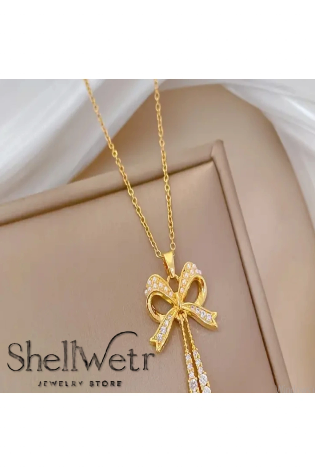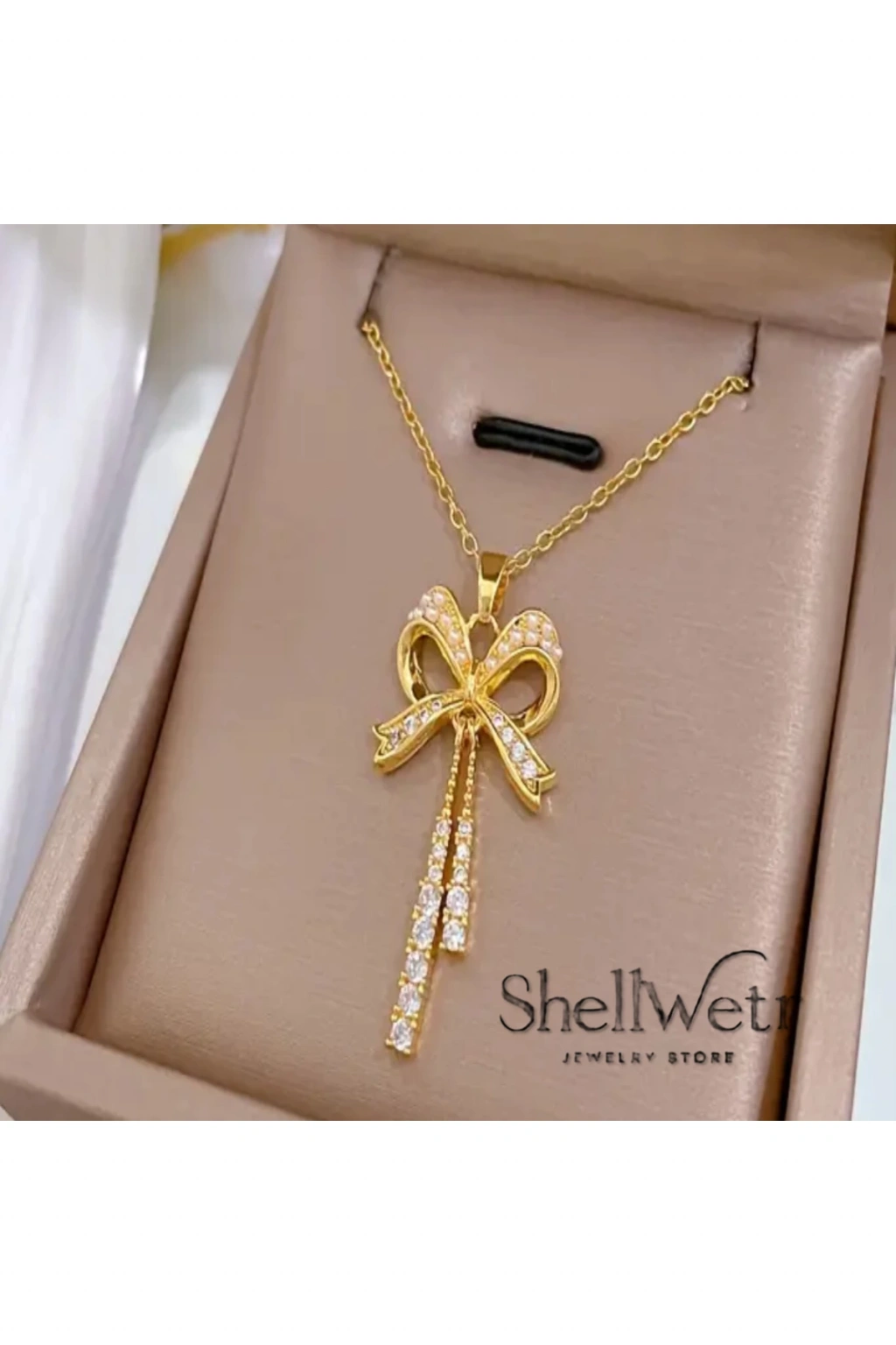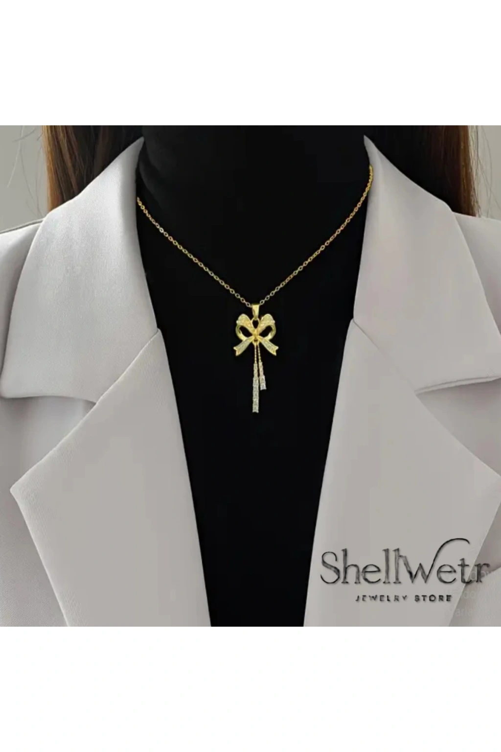 Altın kaplama kurdele kolye, zarif tasarımıyla günlük kullanım ve özel davetler için uygundur. Su, parfüm ve kimyasallardan uzak tutulmalıdır. Uzun ömürlü parlaklığını korumak için kullanımdan sonra yumuşak bir bezle silinmesi tavsiye edilir. Şık kutusunda gönderilir, hediye olarak da tercih edilebilir.