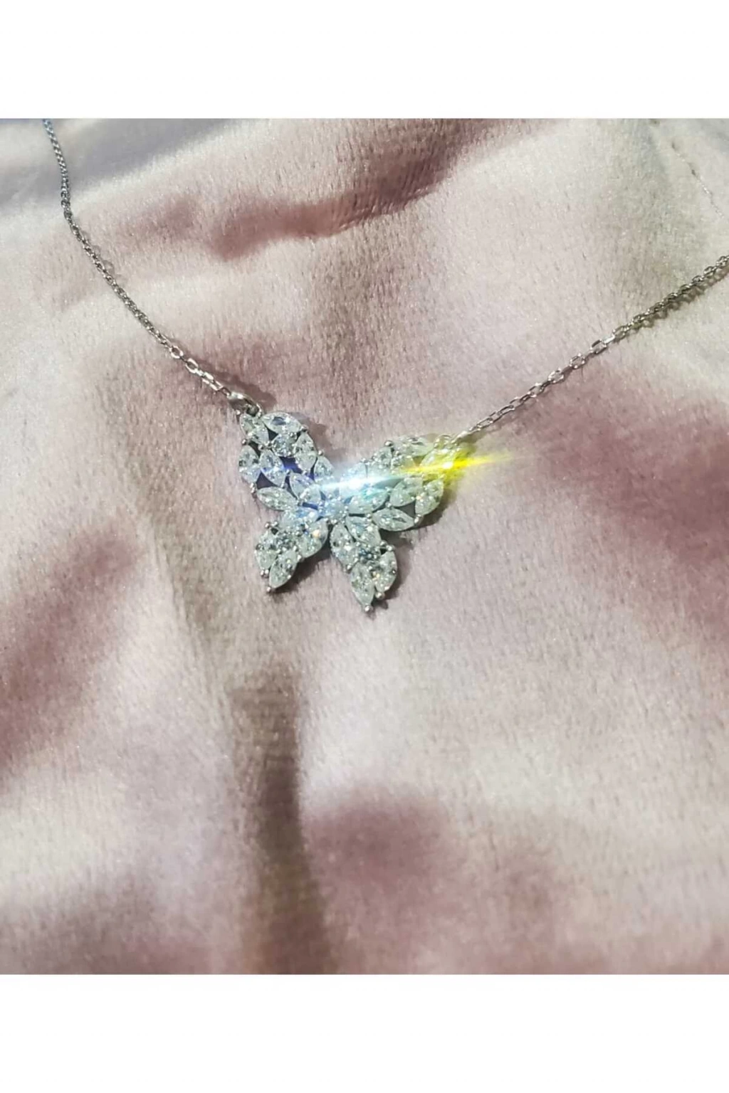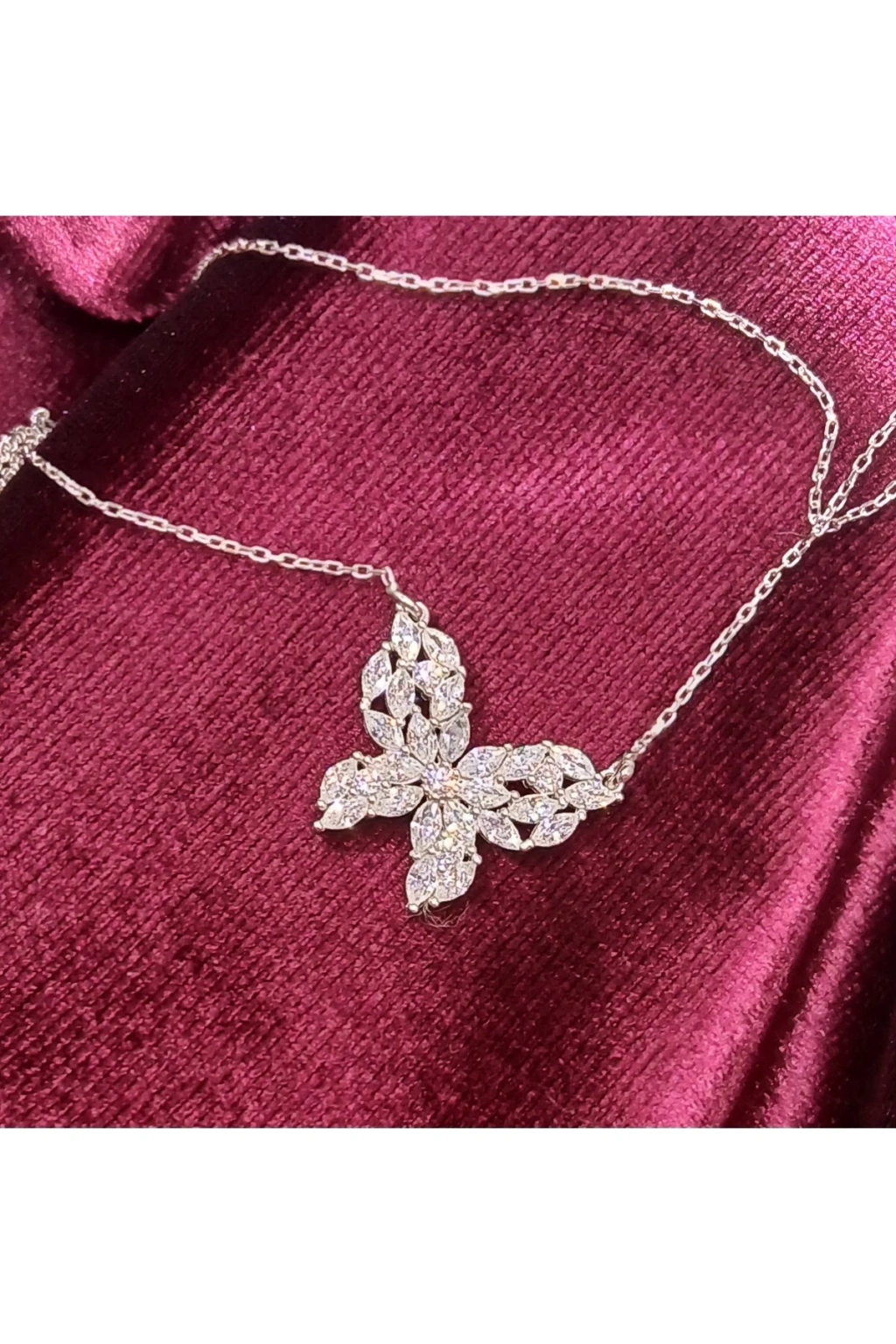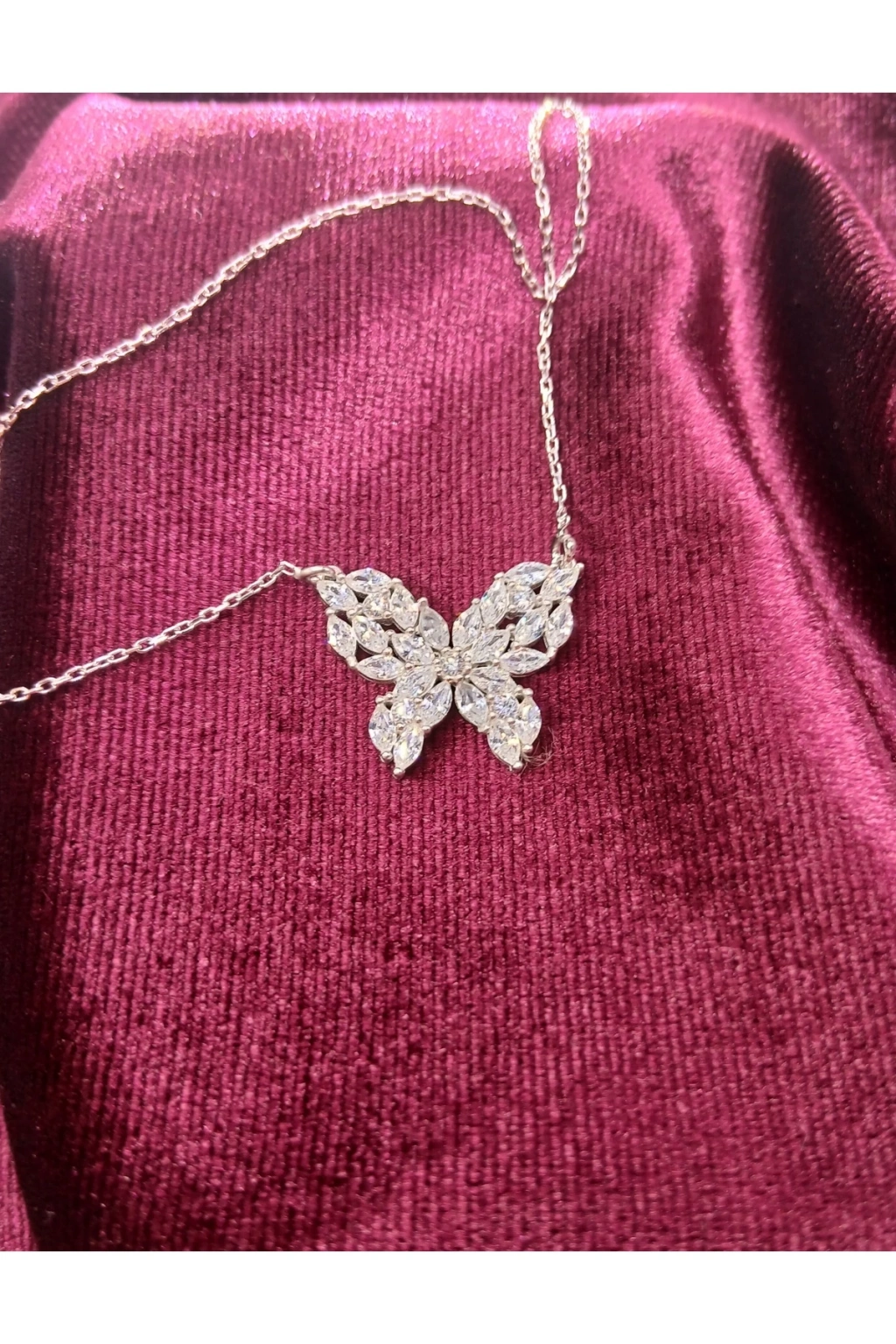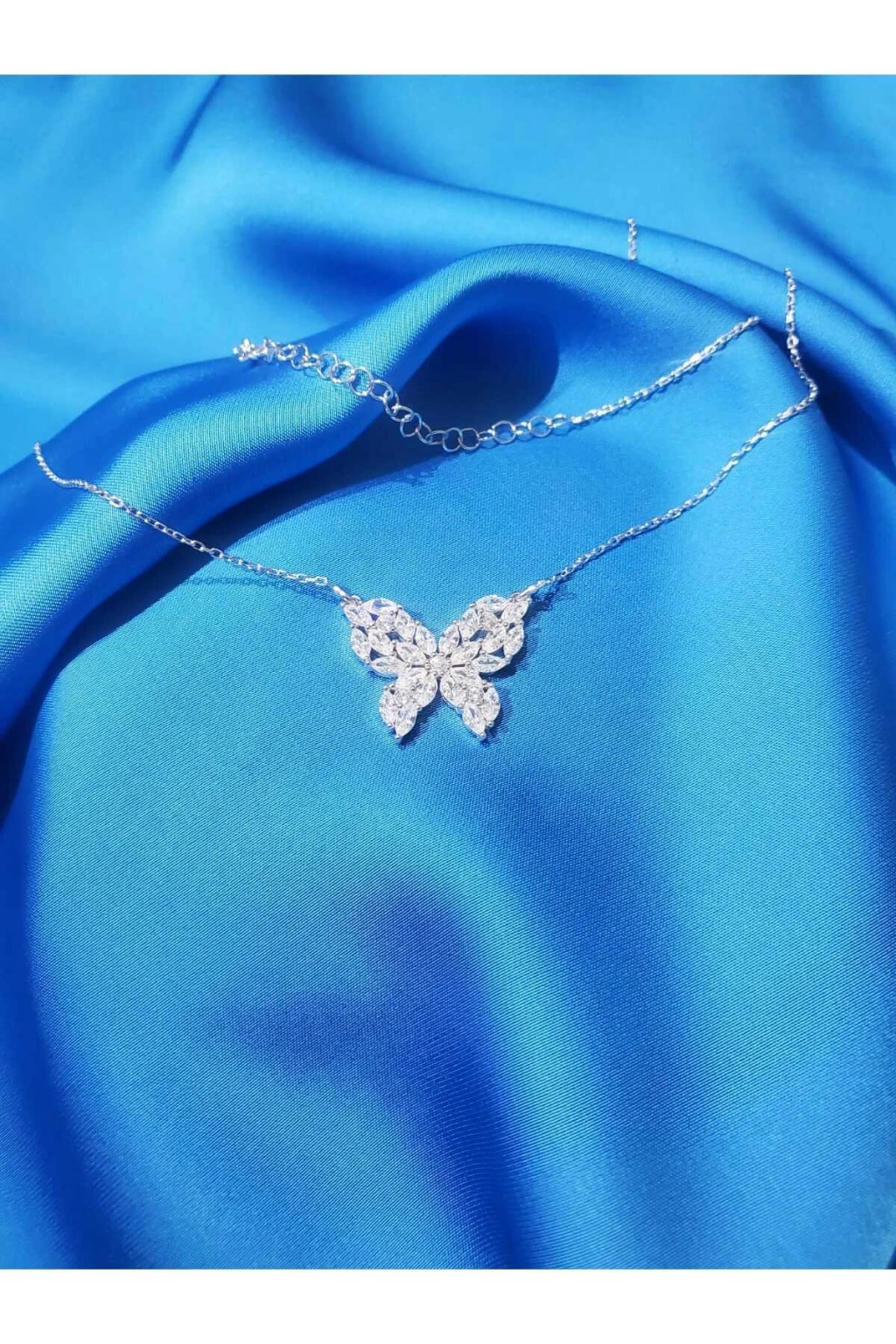 - 925 ayar gümüş malzeme ile üretilmiş, uzun ömürlü ve kaliteli bir aksesuar deneyimi sunar.; - Kadın ve kızlar için özel olarak tasarlanmış, şıklığı ve zarafeti bir arada barındıran kelebek modeli.; - Yetişkinlerin zarif zevkine hitap eden, her türlü özel gün ve etkinlik için ideal bir hediye seçeneği.; - Göz alıcı zirkon taşlarla süslenmiş parlak ışıltısı ile dikkat çeker ve her türlü kıyafetle uyum sağlar.; - 45 cm ve üzeri uzunluğu sayesinde farklı boyun tiplerine kolayca uyum sağlar ve rahat bir kullanım sunar.; - Gümüş rengi ile klasik ve zamansız bir görünüm kazandırarak her zaman moda olan bir aksesuar parçasıdır.