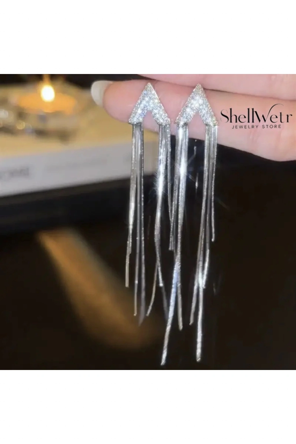 - 925 ayar gümüş malzemeden üretilmiş, uzun ömürlü ve kaliteli bir aksesuar deneyimi sunar.; - Göz alıcı zirkon taş detaylarıyla dikkat çeken bu küpeler, her türlü özel gününüzde şıklığınızı tamamlar.; - Metalik renk seçeneğiyle modern ve sofistike bir görünüm sağlar; günlük kullanım için idealdir.; - Nemli bir bez kullanarak kolayca temizlenebilir yapısı sayesinde bakımı pratiktir.; - Fransa menşeli olup, yüksek standartlarda üretim sürecinden geçmiştir.; - Gümüş materyali ile hem dayanıklılığı hem de estetik duruşu bir arada sunar.; - Uzun tasarımıyla kulakta rahatça otururken, metalik rengiyle göz kamaştırır.; - Shellwetr ithalatçısı olarak güvenilir bir hizmet sunarken, ürününüzü sorunsuz bir şekilde teslim eder.; (Çivisi antialerjik olması adına gümüştür)