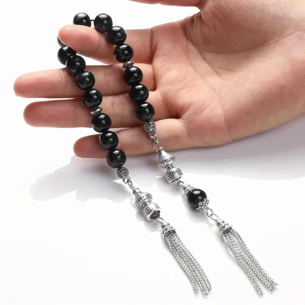 Özel üretim sallama ağabey tesbih siyah doğal taş