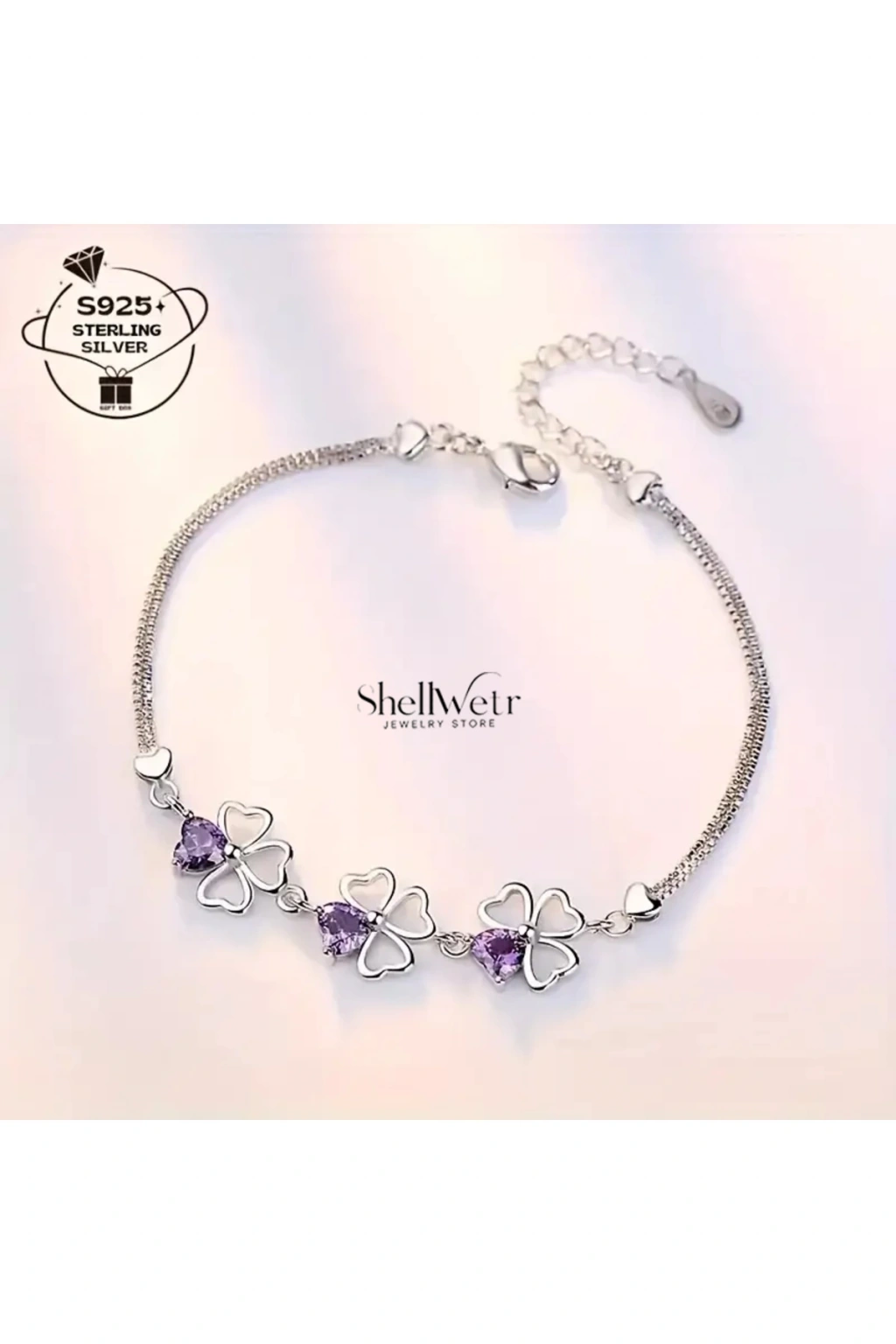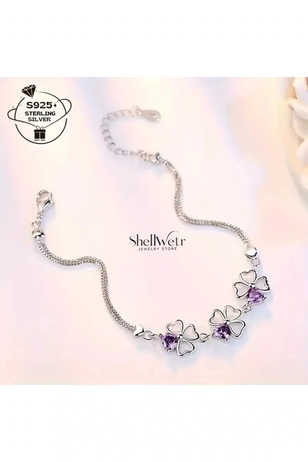 - Zarif tasarımıyla dikkat çeken Purvella Yonca Gümüş Bileklik, her anınıza şıklık katmak için idealdir.; - Nemli bir bez kullanarak kolayca temizlenebilir; böylece bileğinizdeki zarafeti uzun süre koruyabilirsiniz.; - Katı yapısı sayesinde günlük kullanım için uygundur ve dayanıklılığı ile ön plana çıkar.; - %100 saf gümüş materyaliyle üretilmiştir, bu da hem kaliteyi hem de estetiği garanti eder.; - Genç ve dinamik tarzınızı yansıtan bu bileklik, kadınların ve kızların beğenisine sunulmuştur.; - 925 ayar gümüş kullanımıyla değerini kanıtlayan bu parça, zamansız bir aksesuar olarak gardırobunuzda yerini alır.; - Göz alıcı zirkon taş detaylarıyla süslenmiş olan Purvella Yonca Gümüş Bileklik, parmağınızdaki ışıltıyı arttırır.; (Klips ve uzatma zinciri kısmı sağlam olması adına gümüş kaplamadır)