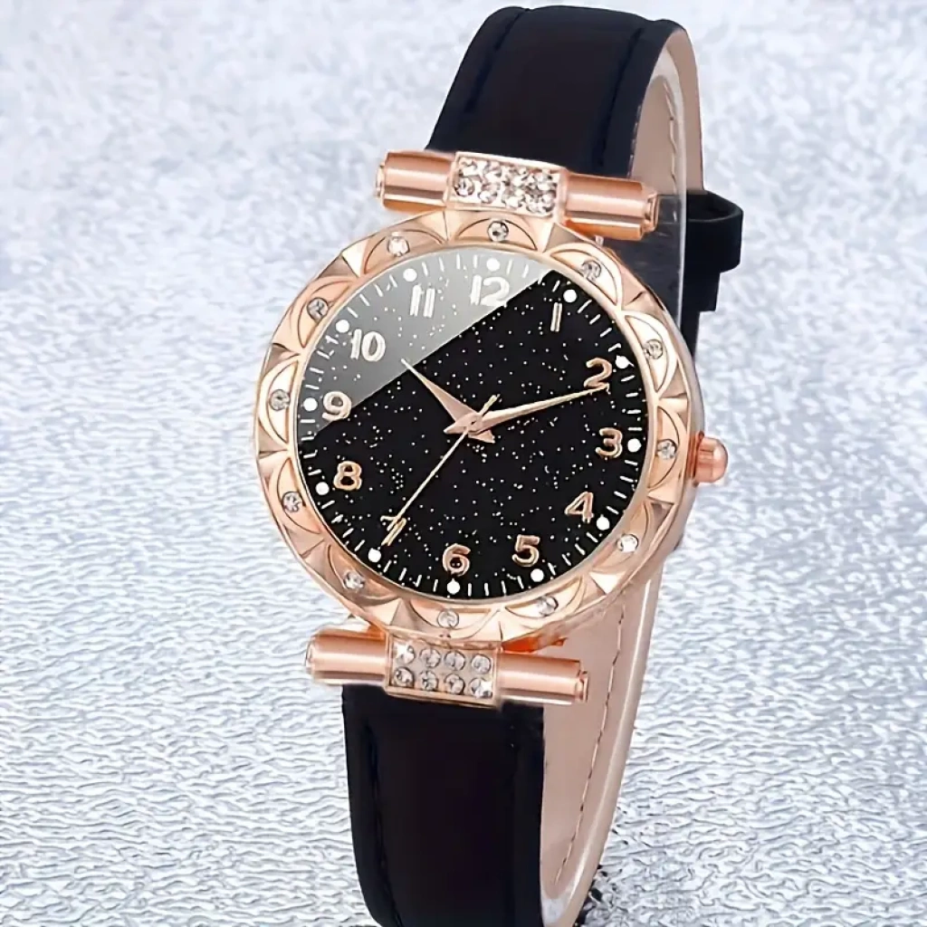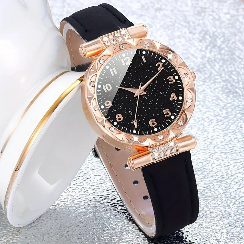 Queen of Tears siyah simli kadın saat'i ve hediye bilek süet siyah kordon