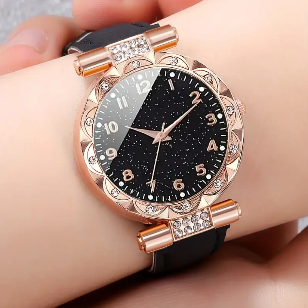 Saaté Rose Gold Mıknatıslı Klips Özelliğe sahip Quartz Kadın saat