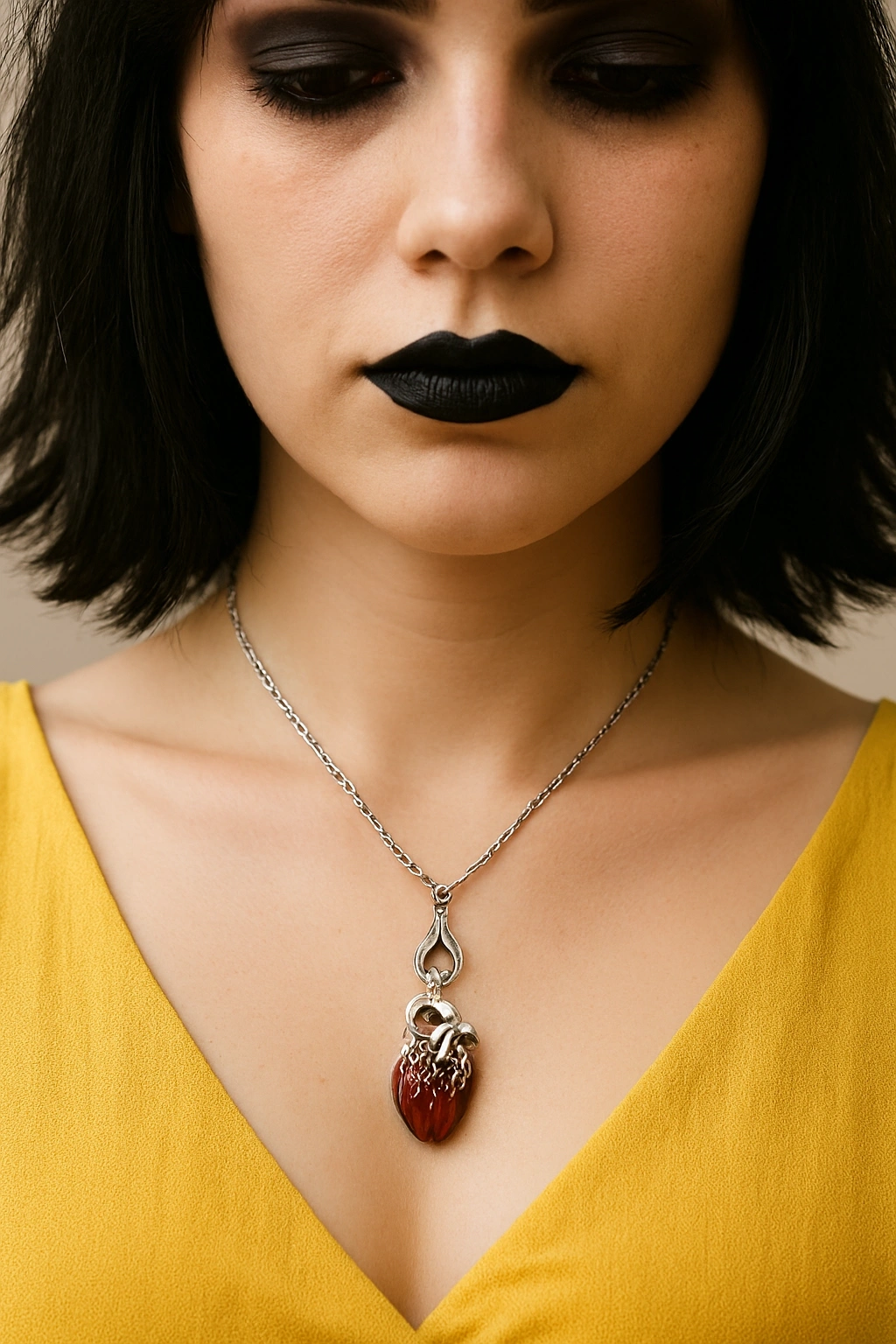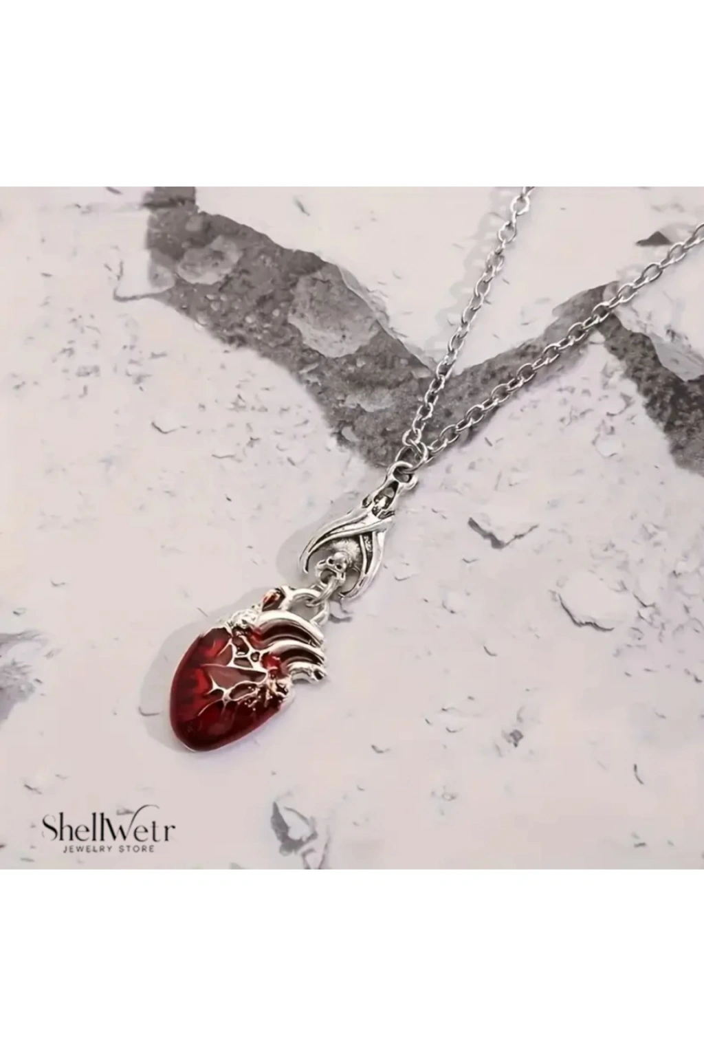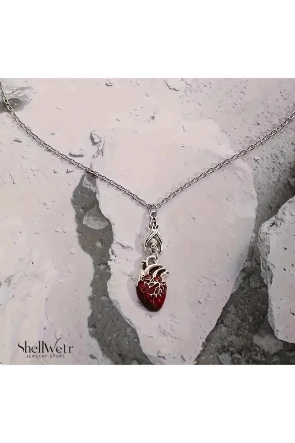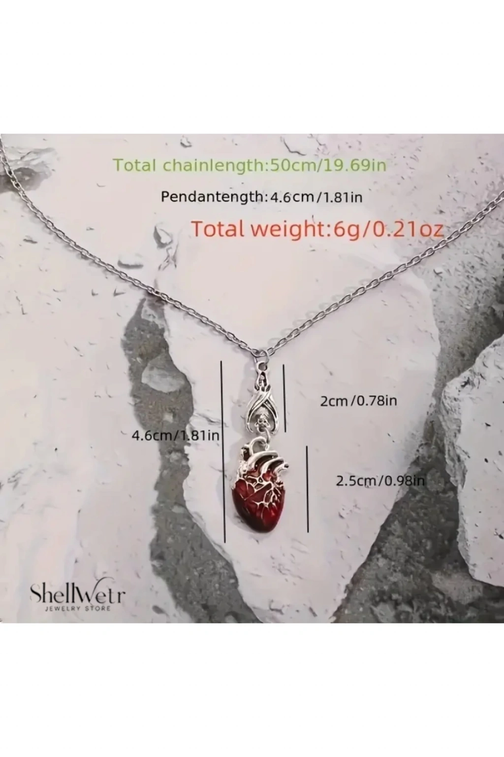 - 925 ayar gümüş malzeme ile üretilmiş, uzun ömürlü ve kaliteli bir aksesuar deneyimi sunar.; - Unisex tasarımı sayesinde hem kadınlar hem de erkekler için uygun, şık ve modern bir stil oluşturur.; - Yetişkinler için ideal olan bu kolye, günlük kullanımda rahatlıkla tercih edilebilir.; - 45 cm ve üzeri uzunluk seçenekleriyle farklı boy seçeneklerine sahip olup, kişisel zevke göre ayarlanabilir.; - Kırmızı kalpli detaylarıyla dikkat çeken bu kolye, gotik tarzı sevenler için dramatik bir dokunuş katıyor.; - Gümüş rengi ile her türlü kıyafetle uyum sağlayarak zarif bir görünüm sağlar.