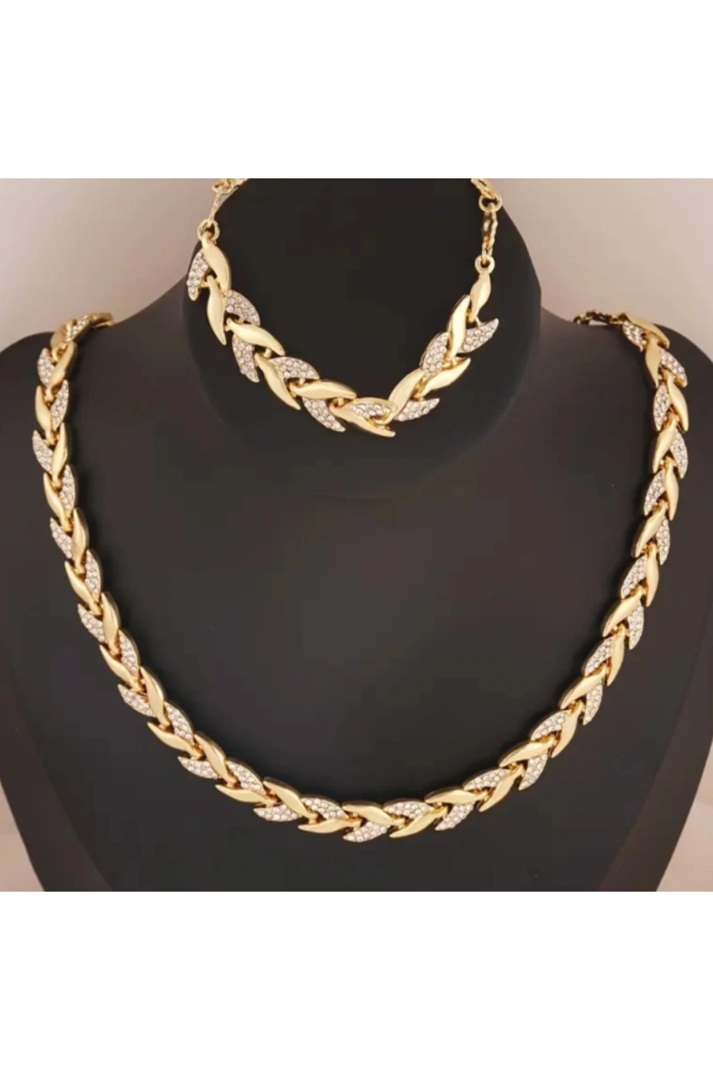 - Zarif tasarımıyla dikkat çeken Solvita Altın Kaplama Işıltılı Kolye Bileklik Set, sevdikleriniz için mükemmel bir hediye seçeneği sunar.; - Genç yaş grubuna hitap eden bu set, enerjik ve modern stilinizi tamamlamanız için idealdir.; - Bakır materyalden üretilmiş olup, dayanıklılığı ve parlak görünümü ile öne çıkar.; - İki parçadan oluşan set; kolye ve bileklikten oluşur, böylece kombininizi zenginleştirirken aynı zamanda şıklığınızı korumanızı sağlar.; - Zirkon taş detaylarıyla göz alıcı bir parlaklık kazanan bu takılar, her türlü özel gününüzde yanınızda olacaktır.; - Kolay bakım imkanı sağlayan nemli bir bezle silerek uzun süre ilk günkü gibi kalmasını sağlayabilirsiniz.; - Türkiye'de üretilen bu ürünler, yerel üretim avantajıyla hem ekonomimize katkıda bulunur hem de kalite standartlarına uygunluk gösterir.