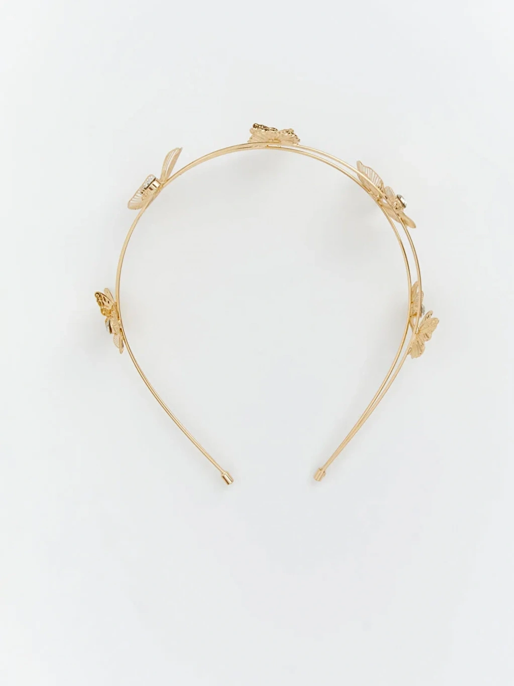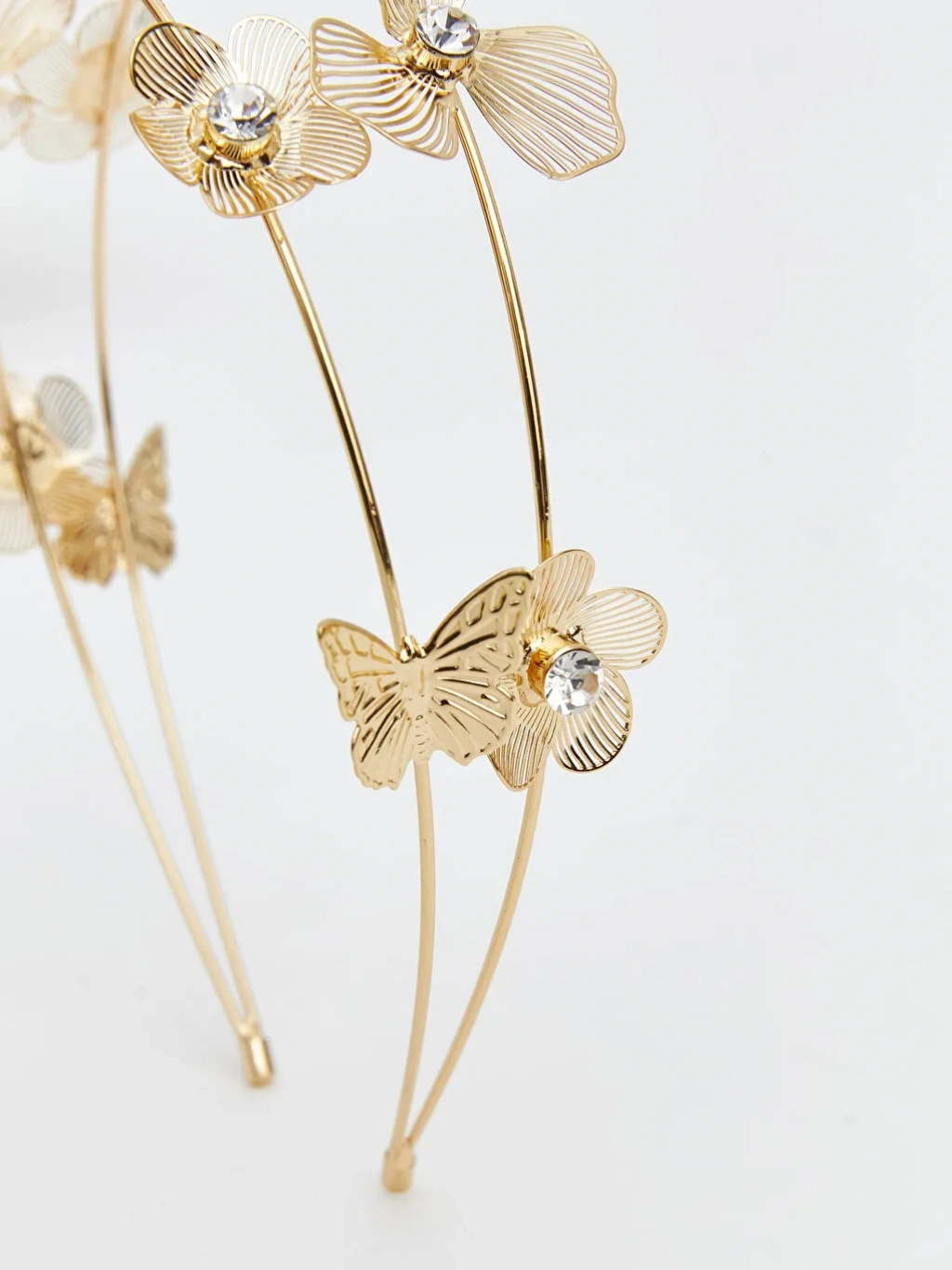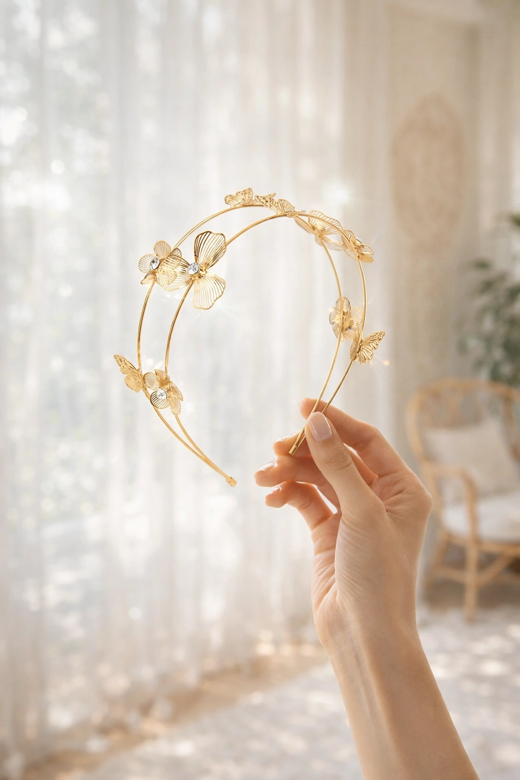 Kelebek ve çiçek detaylarının büyüleyici uyumuyla tasarlanan Butterfly Bloom saç tacı, stilinize romantik ve göz alıcı bir dokunuş katar. Parlak ve zarif yapısı sayesinde özel günlerde, davetlerde ve fotoğraf çekimlerinde dikkatleri üzerinize çeker.