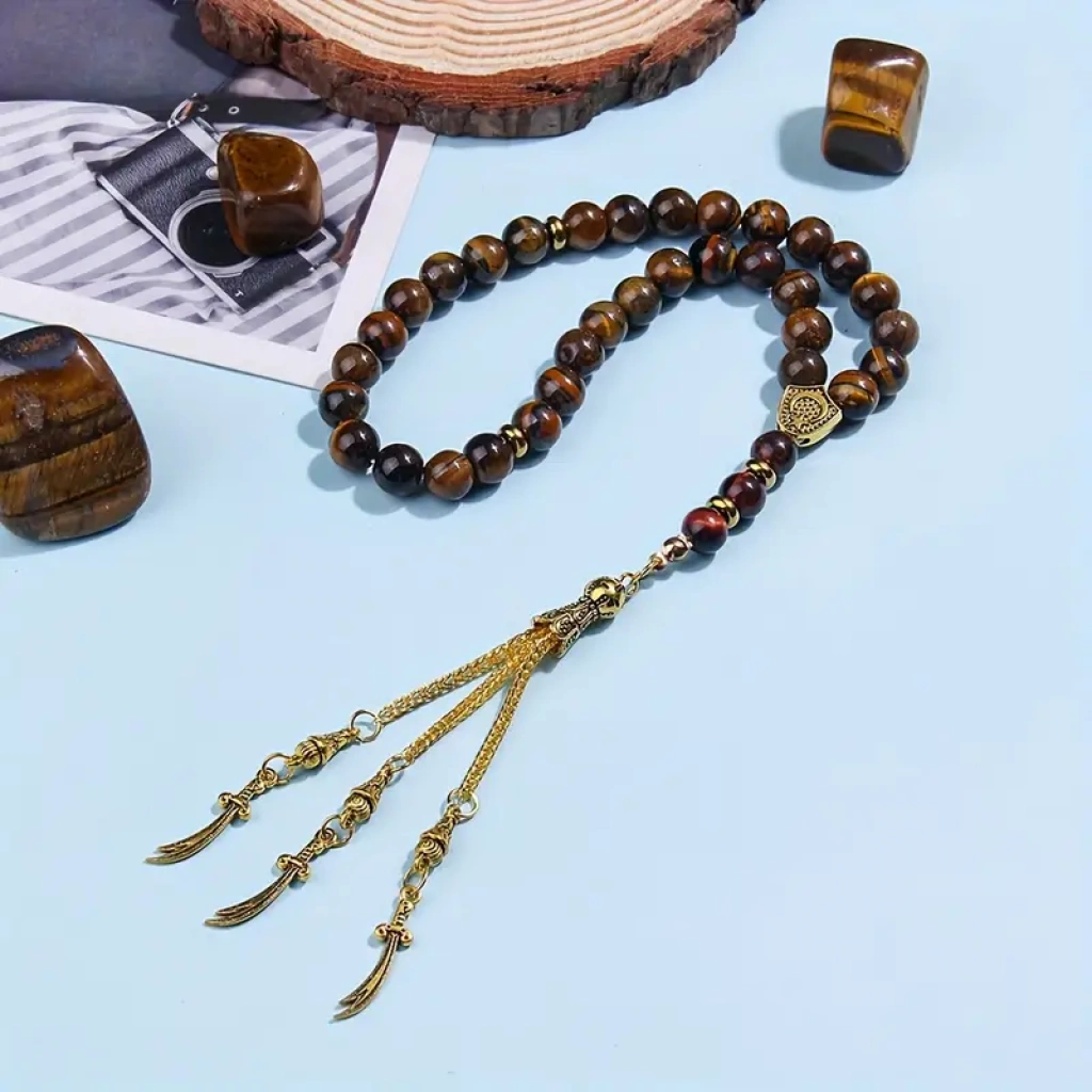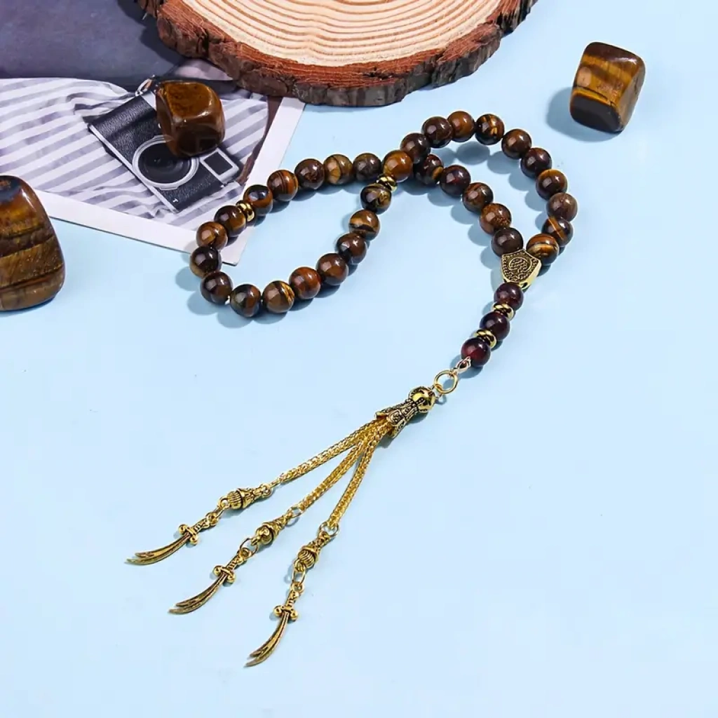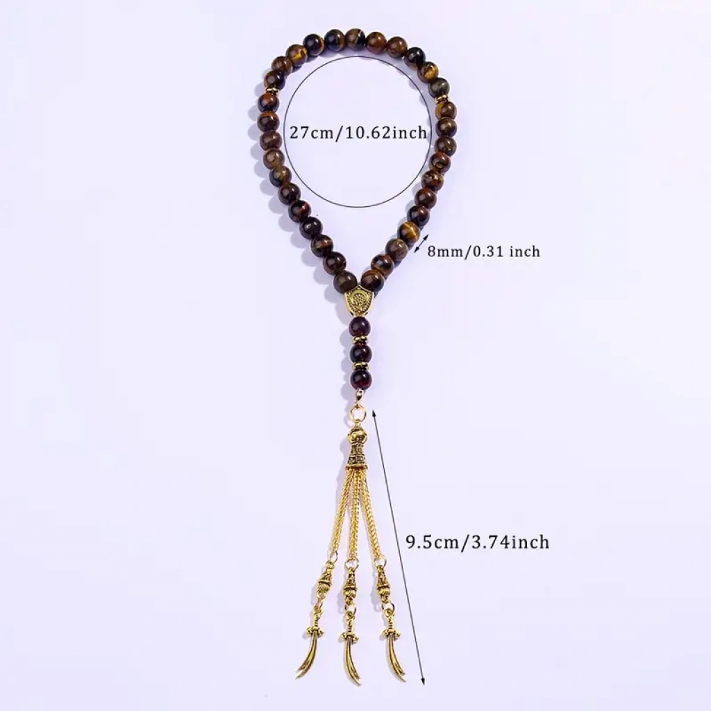 Yuvarlak Kaplan Gözü Taşı Tespih Bileklik Saf El Yapımı Tasarım Scimitar Bileklik Erkek