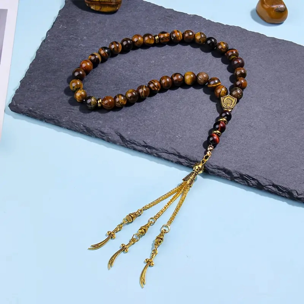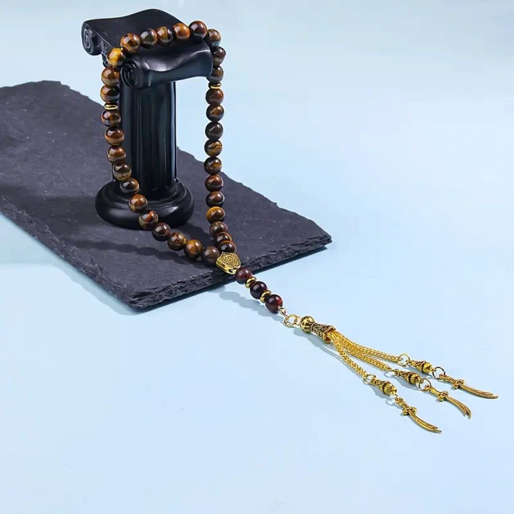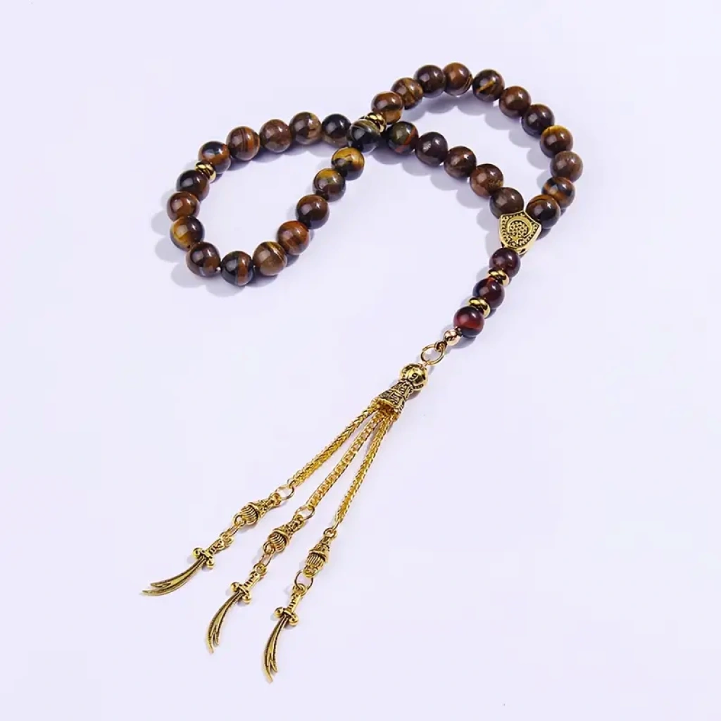 Yuvarlak Kaplan Gözü Taşı Tespih Bileklik Saf El Yapımı Tasarım Scimitar Bileklik Erkek